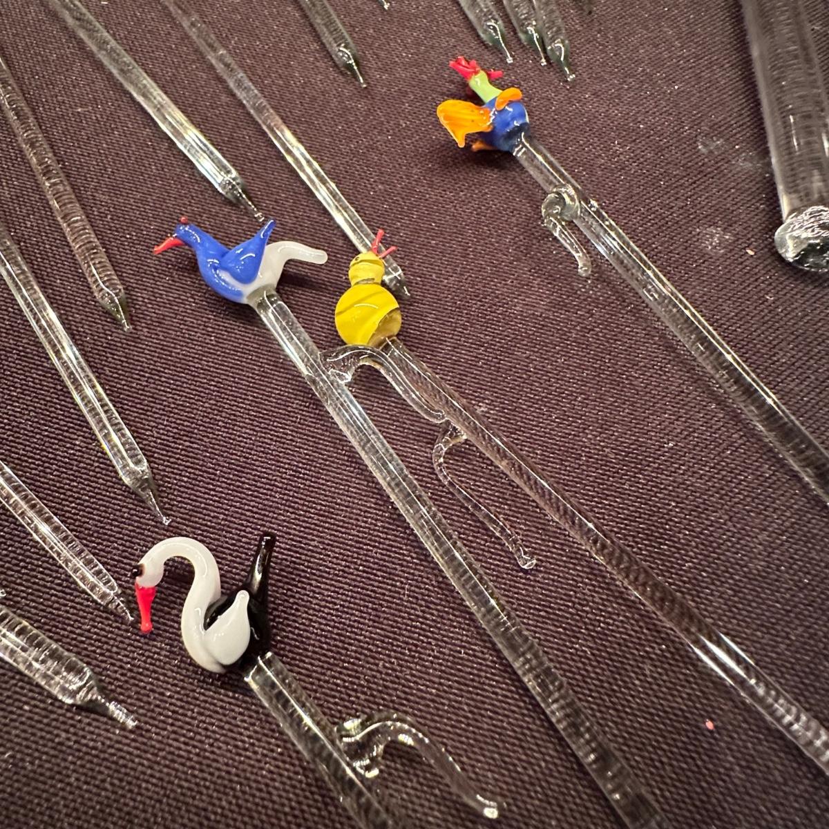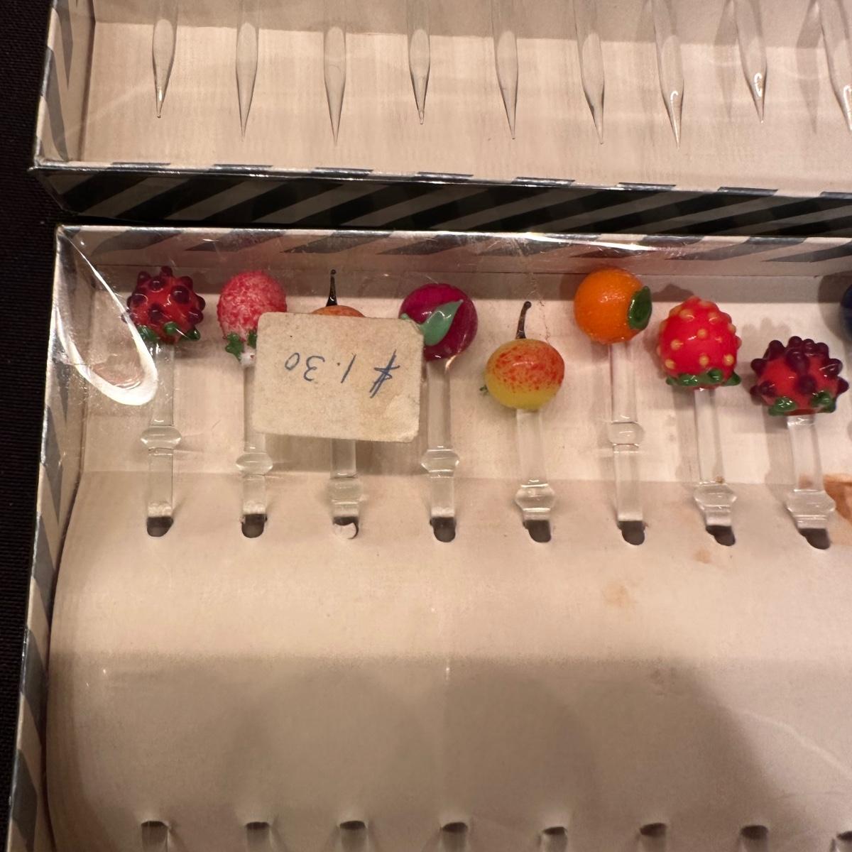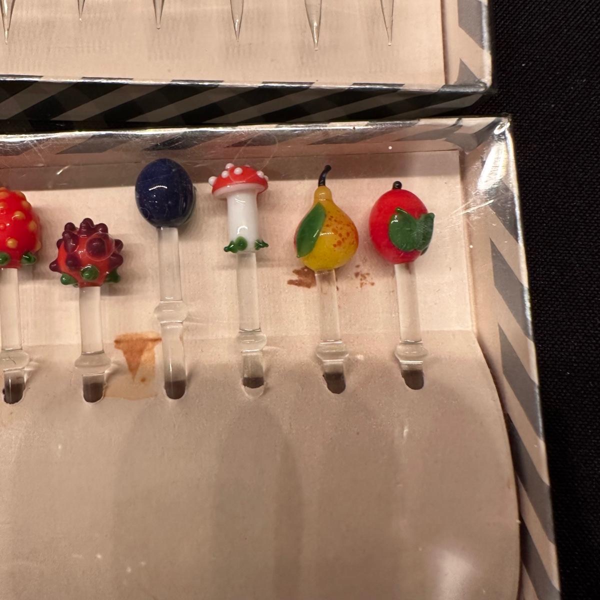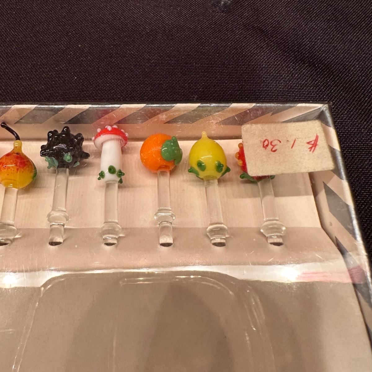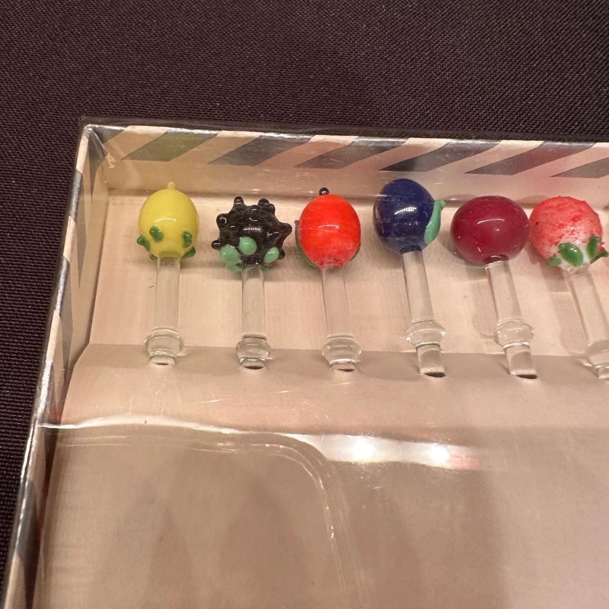 Glass ice bucket, pitcher, and decorative glass swizzle sticks. Ice bucket measures 7.5”D x 7..5”H. Shipping available.