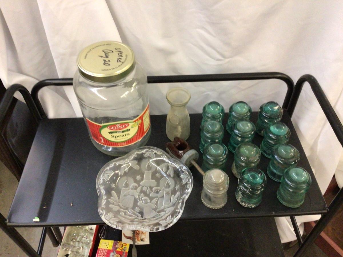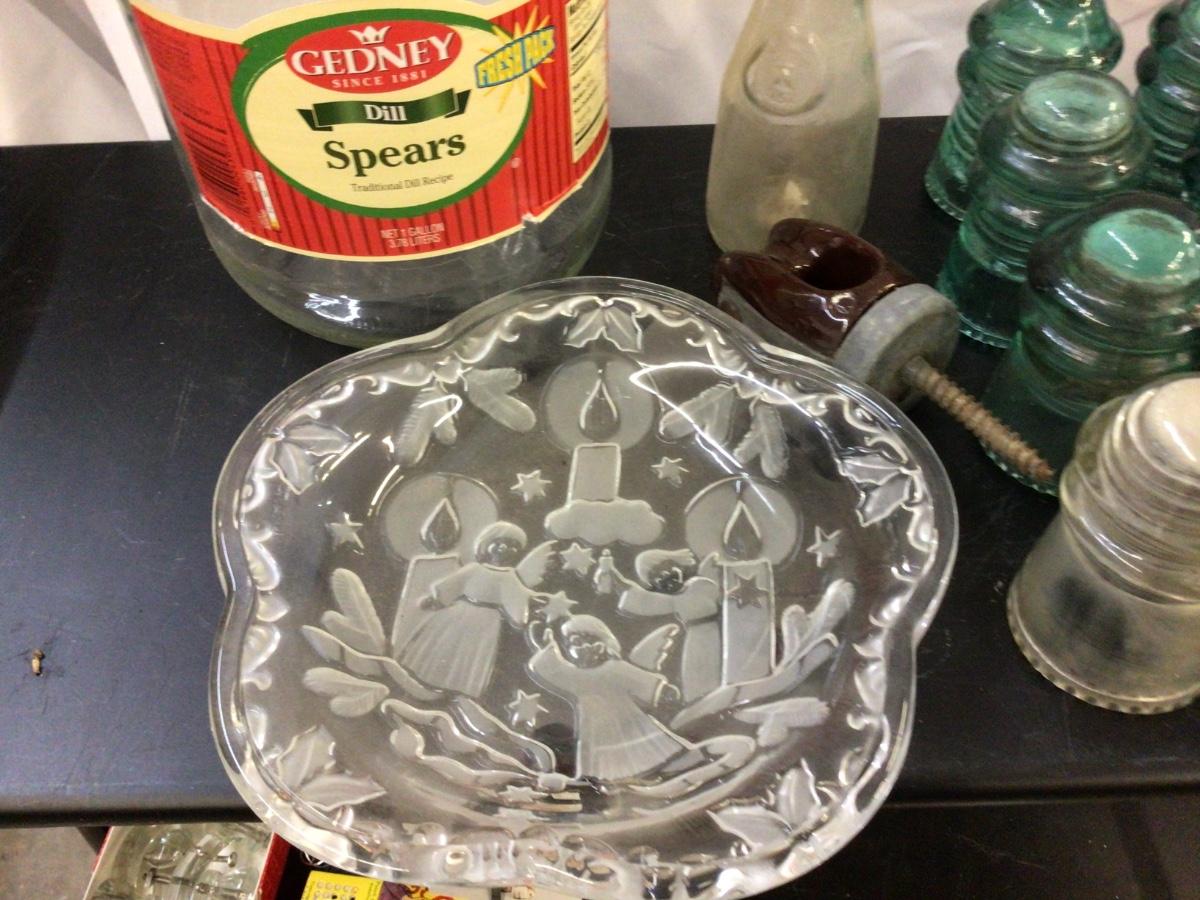 Glass Insulators, PicklecJar, Glass Milk Bottle, Glass Holiday Oval Tray