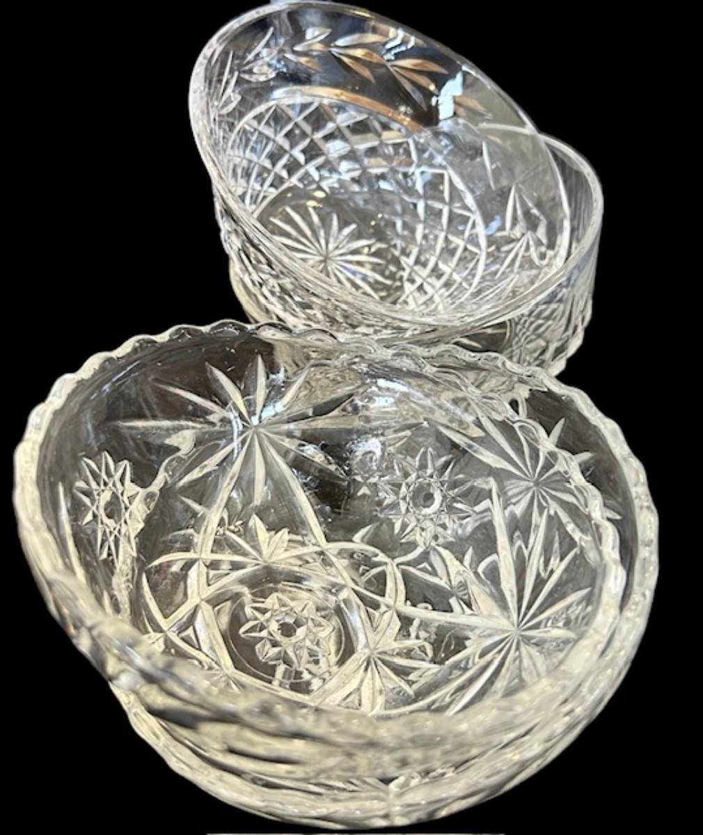 Etched Glass Small Berry/Dessert Bowls (set of 4)
