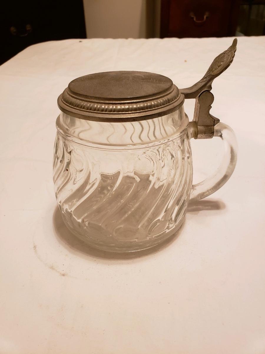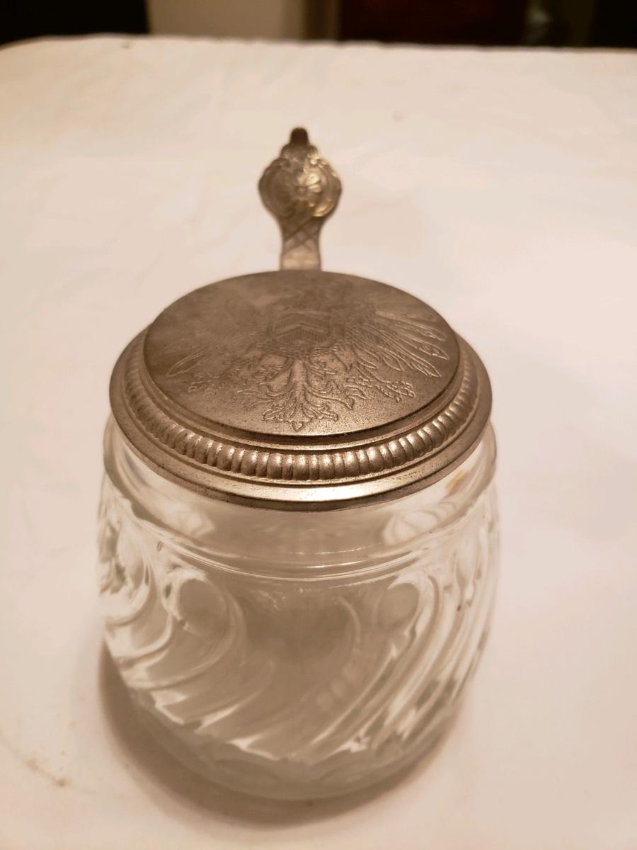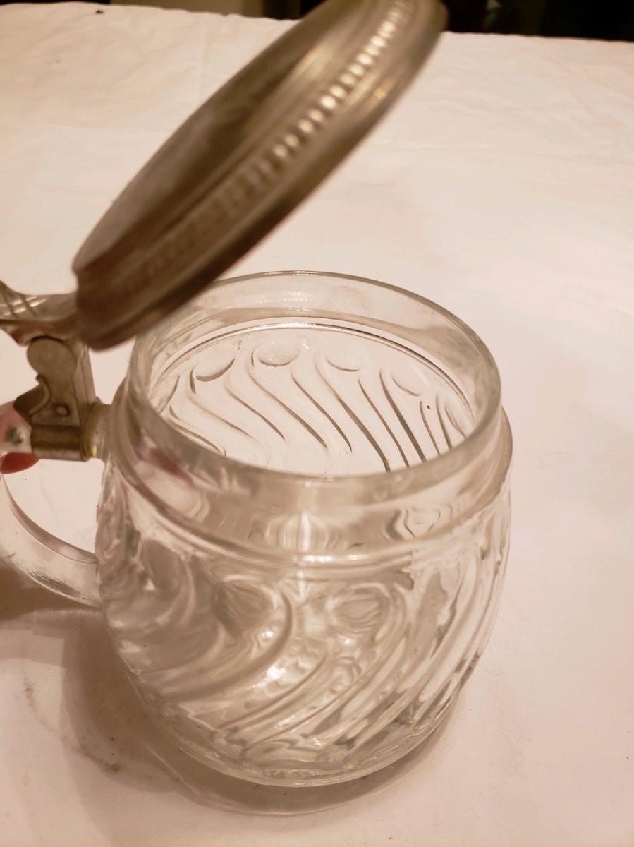 Glass jar with embossed flip metal lid. 4-1/2” tall