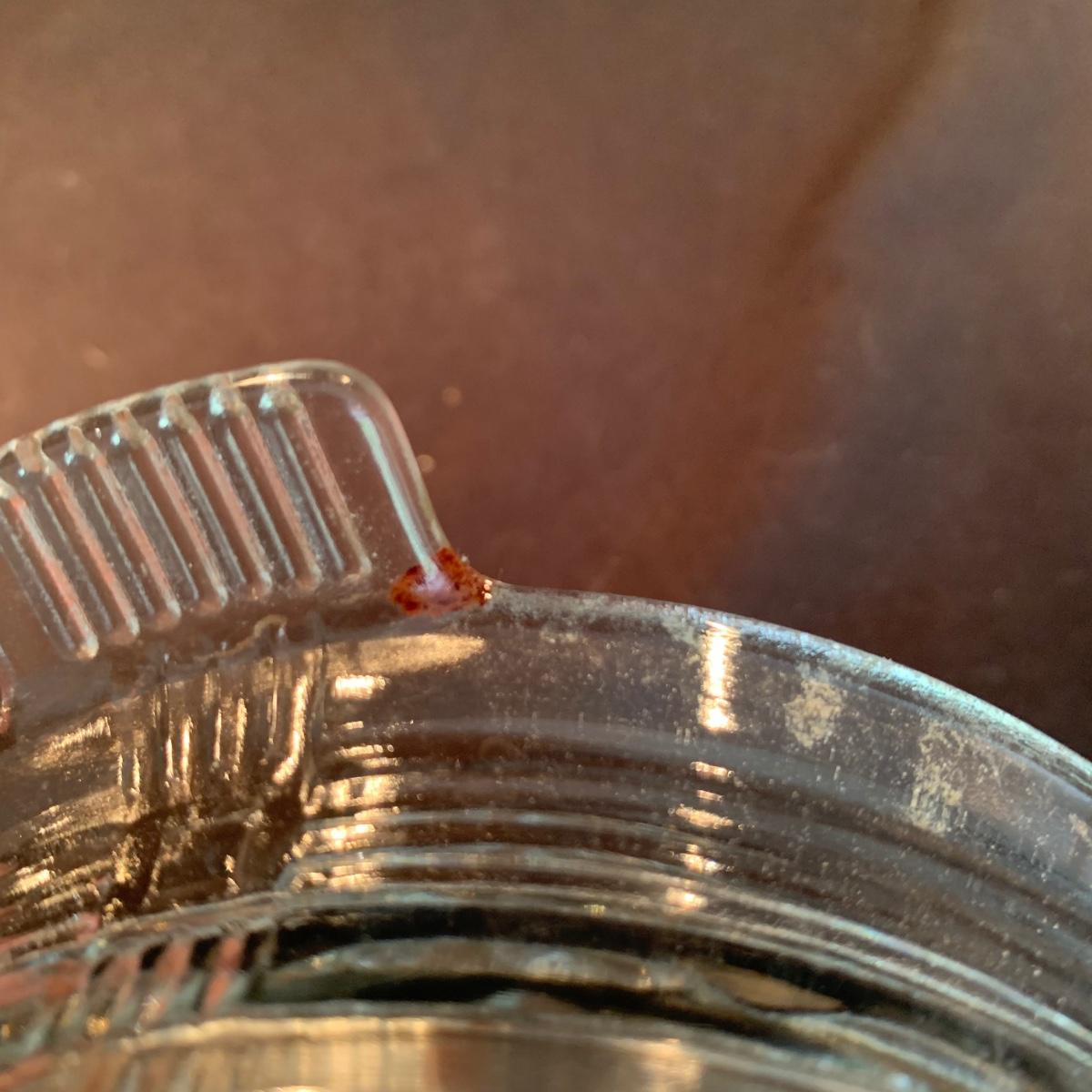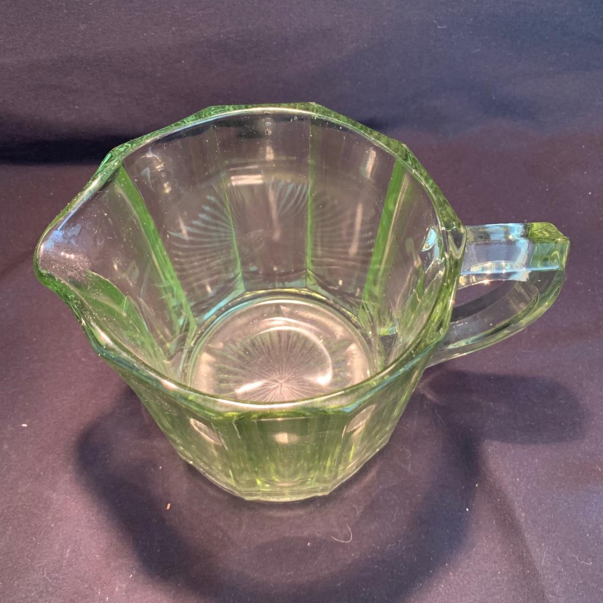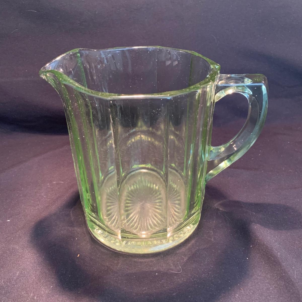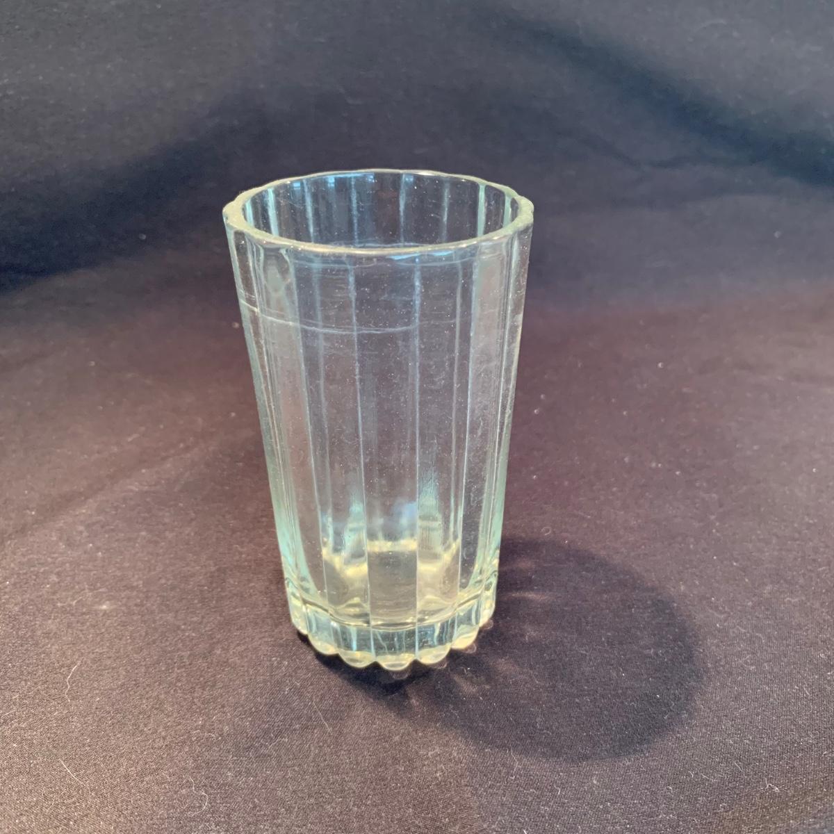 This lot includes a set of four glass cups, two glass lemon juicers, and a glass pitcher. All the pieces are in good condition but need to be cleaned and washed. The largest piece measures about 7in x 7.5in. Shipping available.