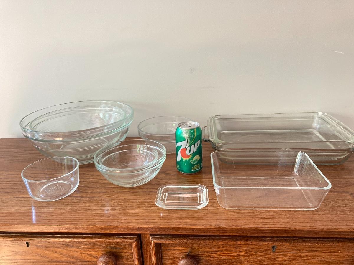 #89 Glass Kitchenware, Mixing Bowls, Casseroles, Etc. Lot of  10