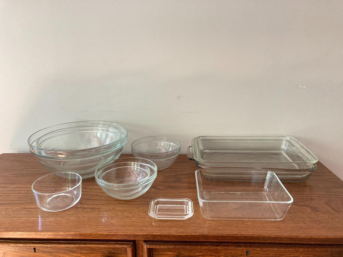 #89 Glass Kitchenware, Mixing Bowls, Casseroles, Etc. Lot of 10