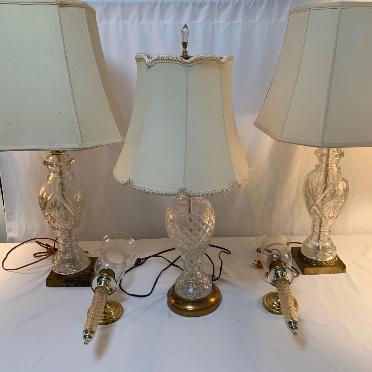 Three Ornate Glass Lamps w/ Pair of Candle Sconces (GR1-KW)