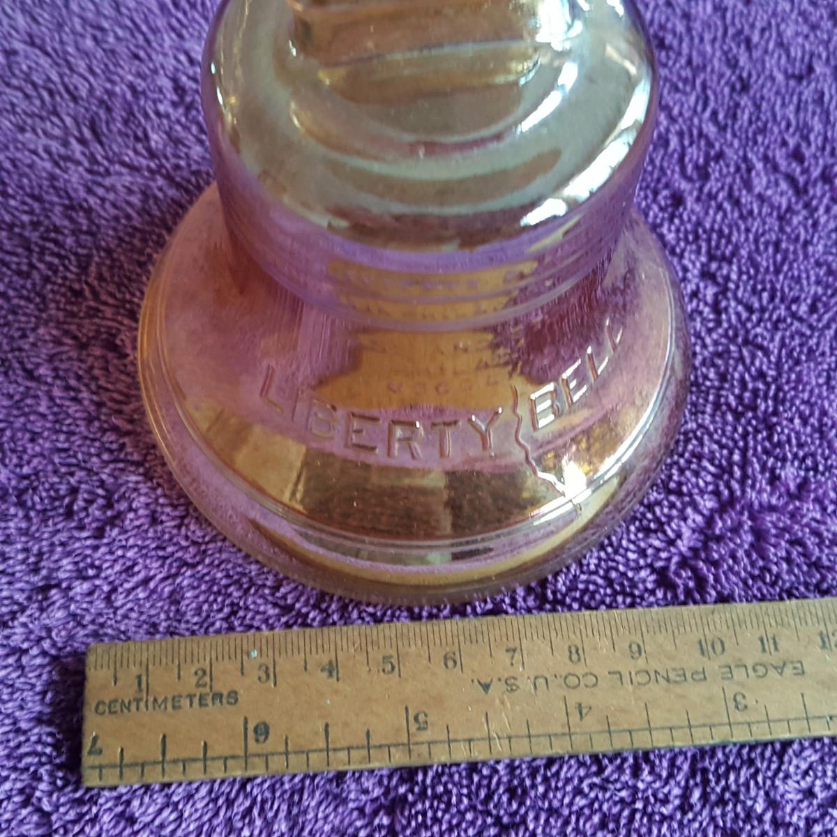 This auction lot is for a Glass Liberty Bell Dime Bank. This fun bank is made from molded iridescent glass and will not only save your dimes but look good while doing so. Nice 70's collectible.