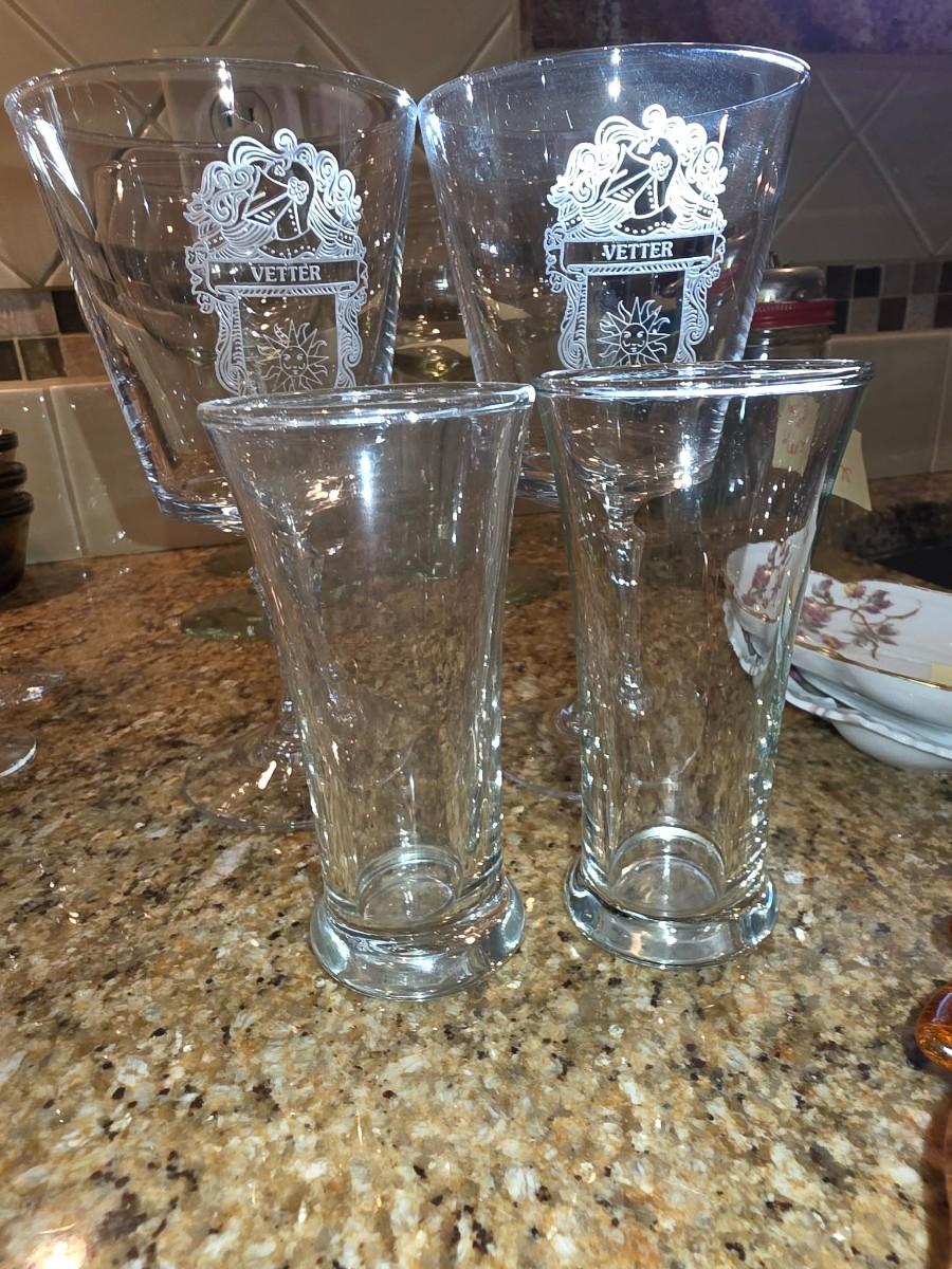 Two large glasses and two shot glasses