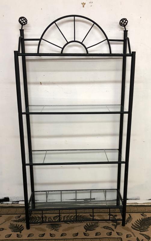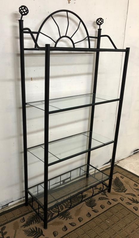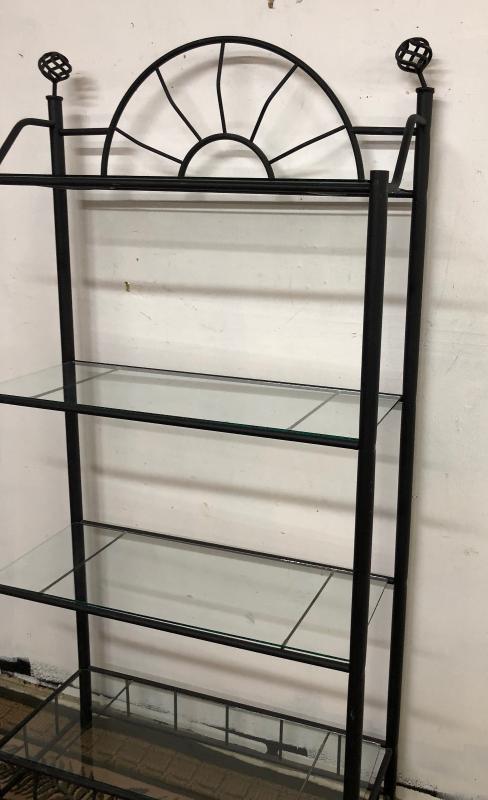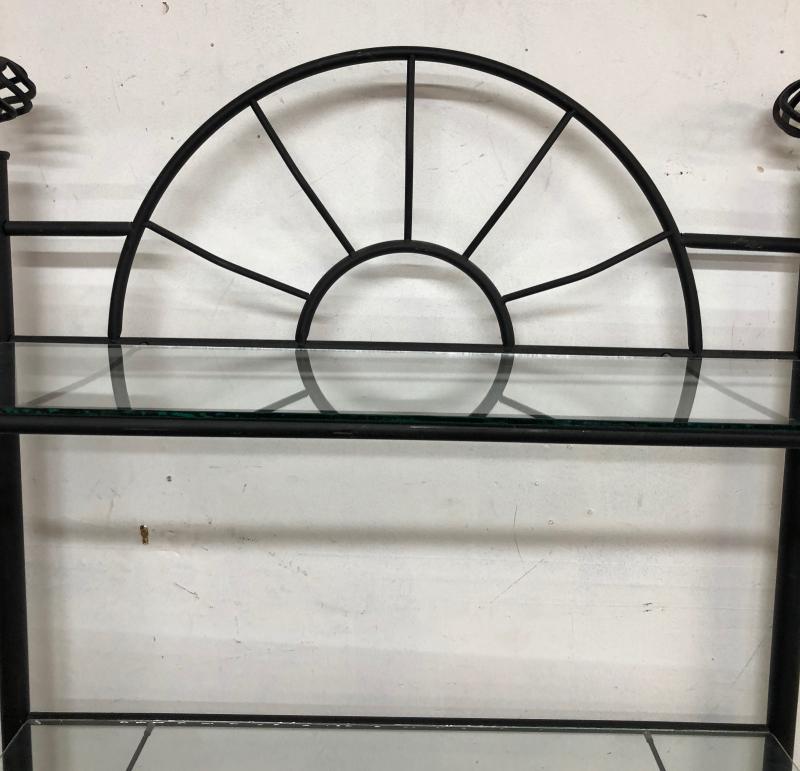 Wrought iron with three glass shelves on this handy, fold-away...some use wear...74"h x 35" x 15"...