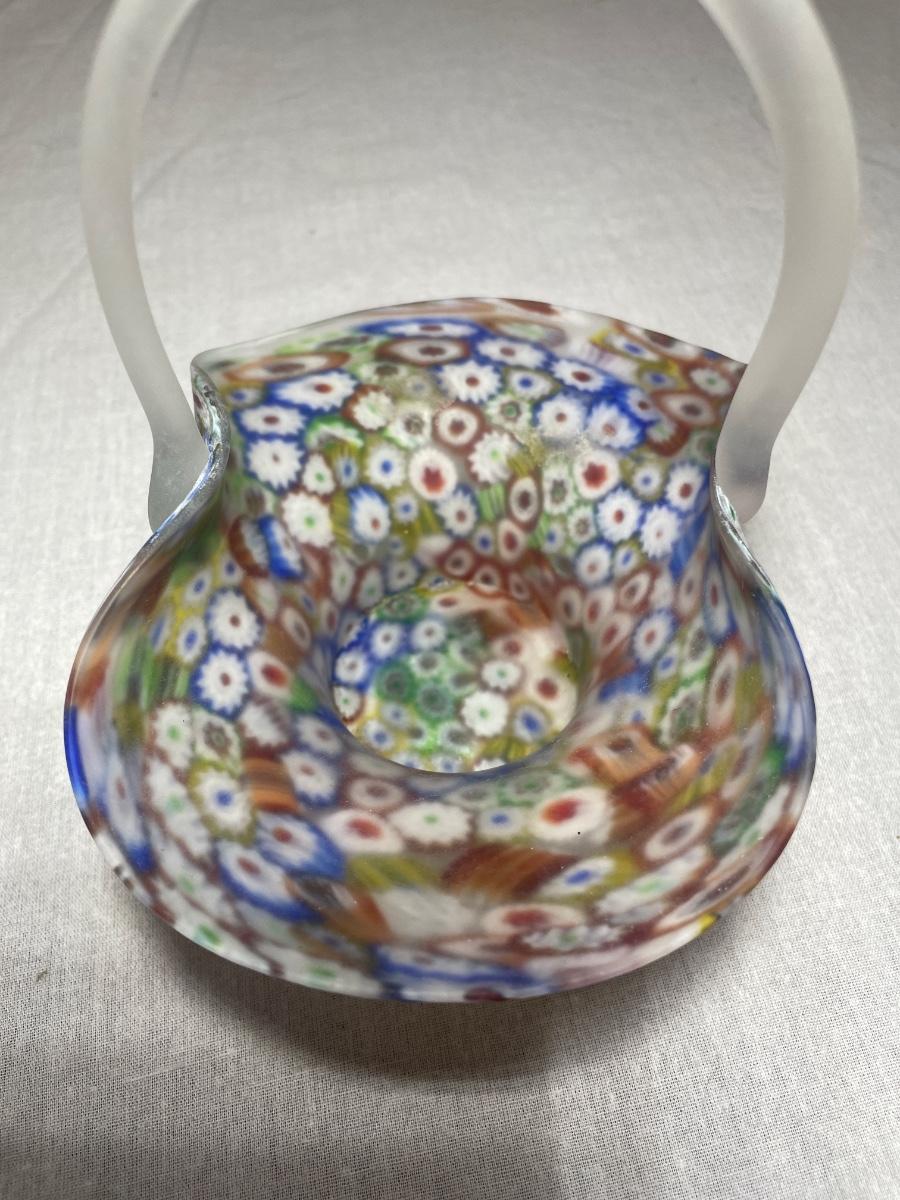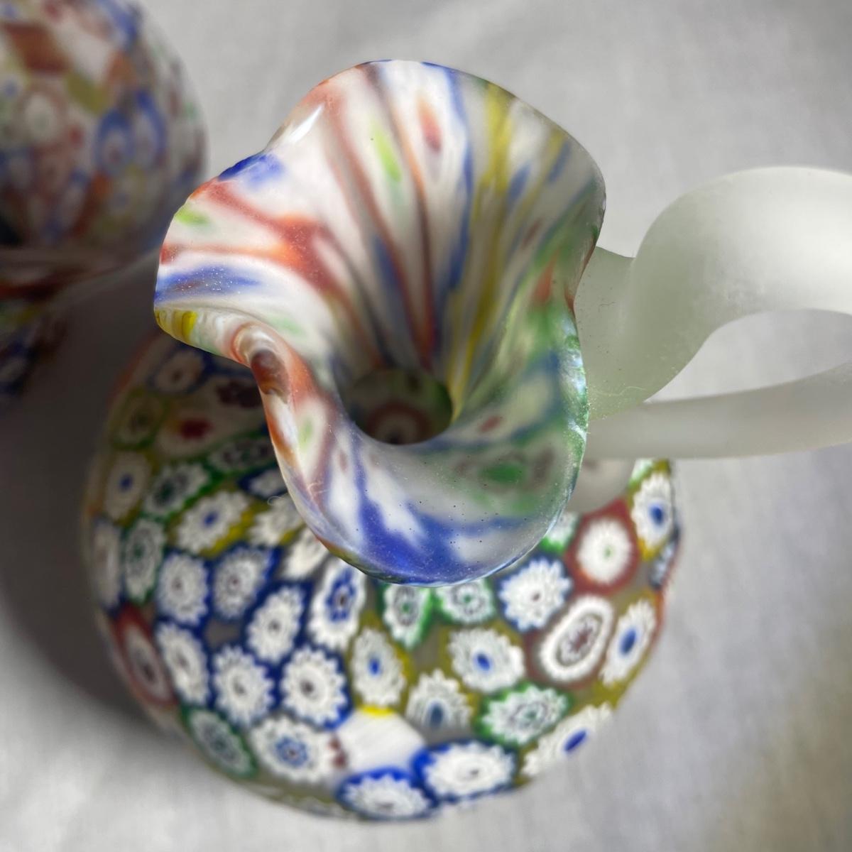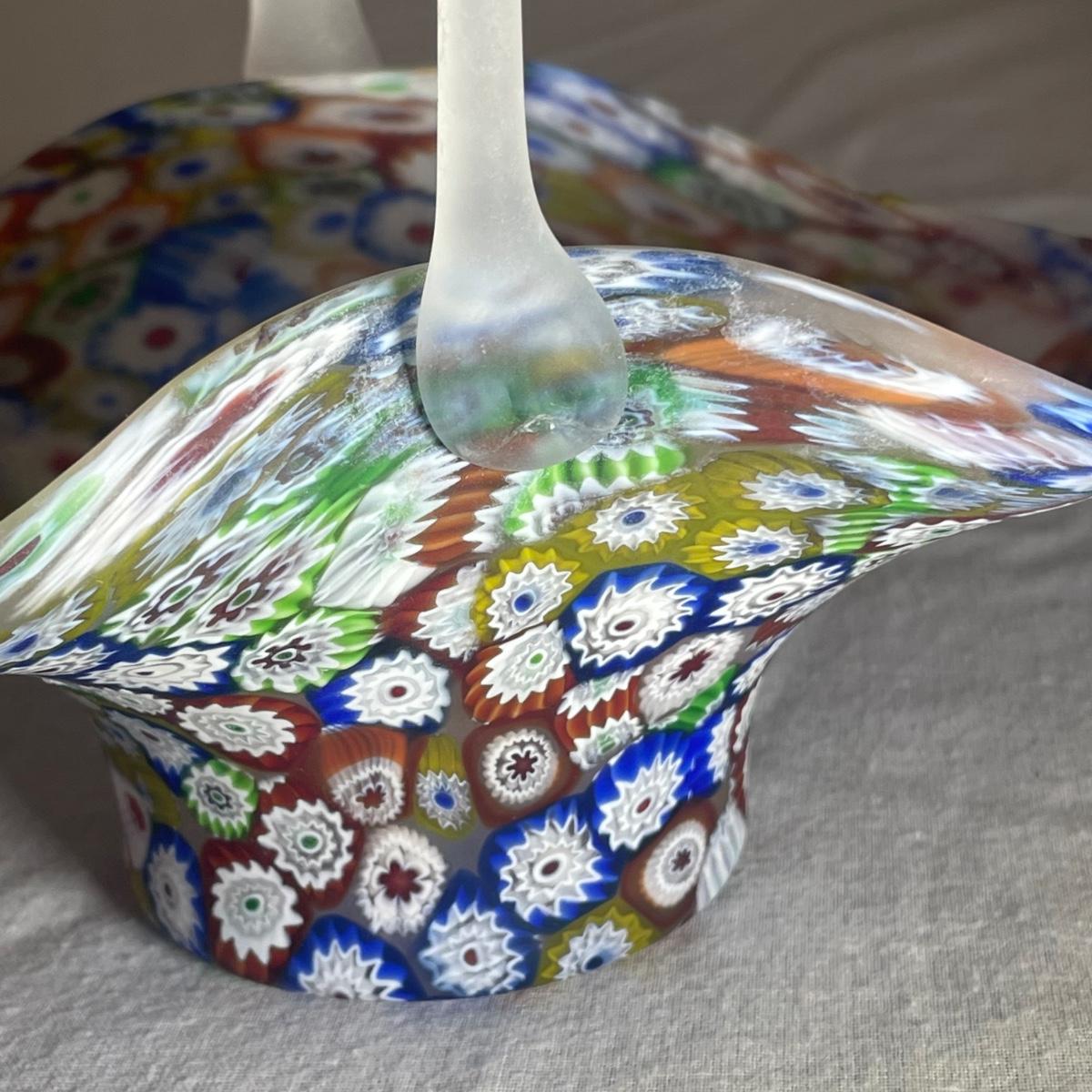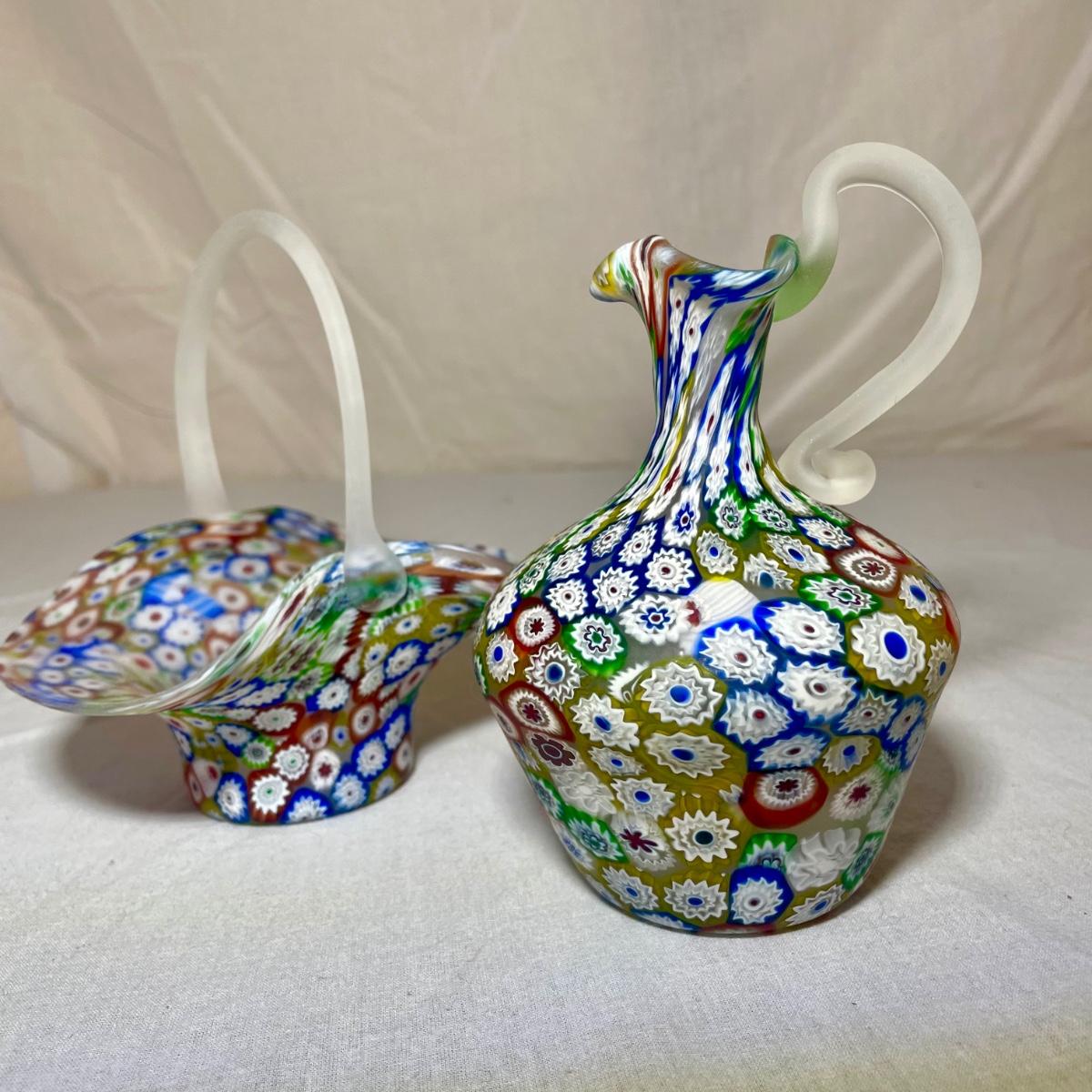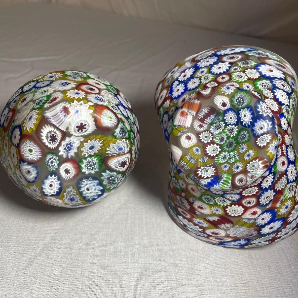A matching pair of very fine satin glass millefiori pieces that look like they are Murano but we cannot guarantee that. Both are in very good condition with no chips, cracks or blemishes.