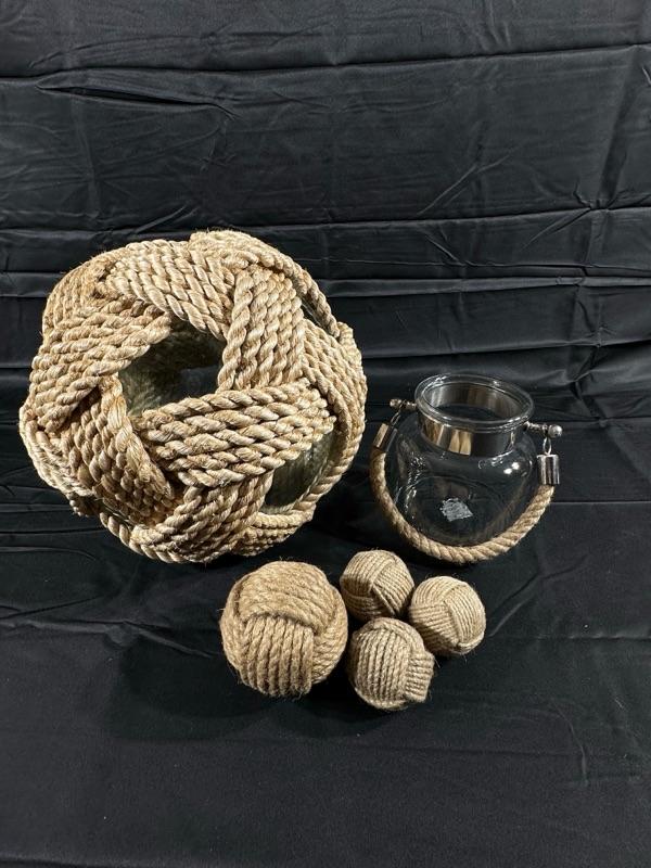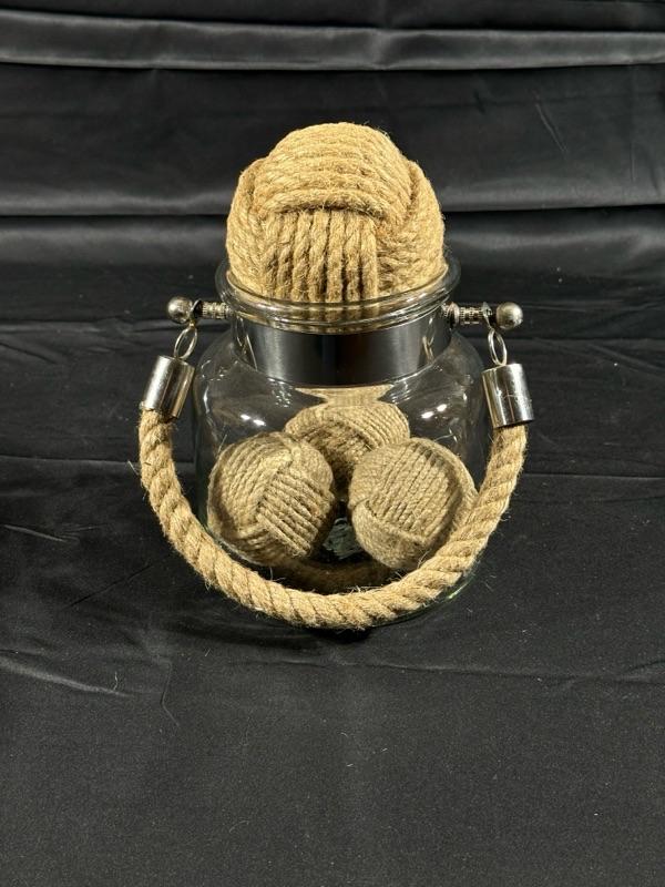 Large nautical ball 13in L x 11.5in H, Jar 6in H x 6.25in L