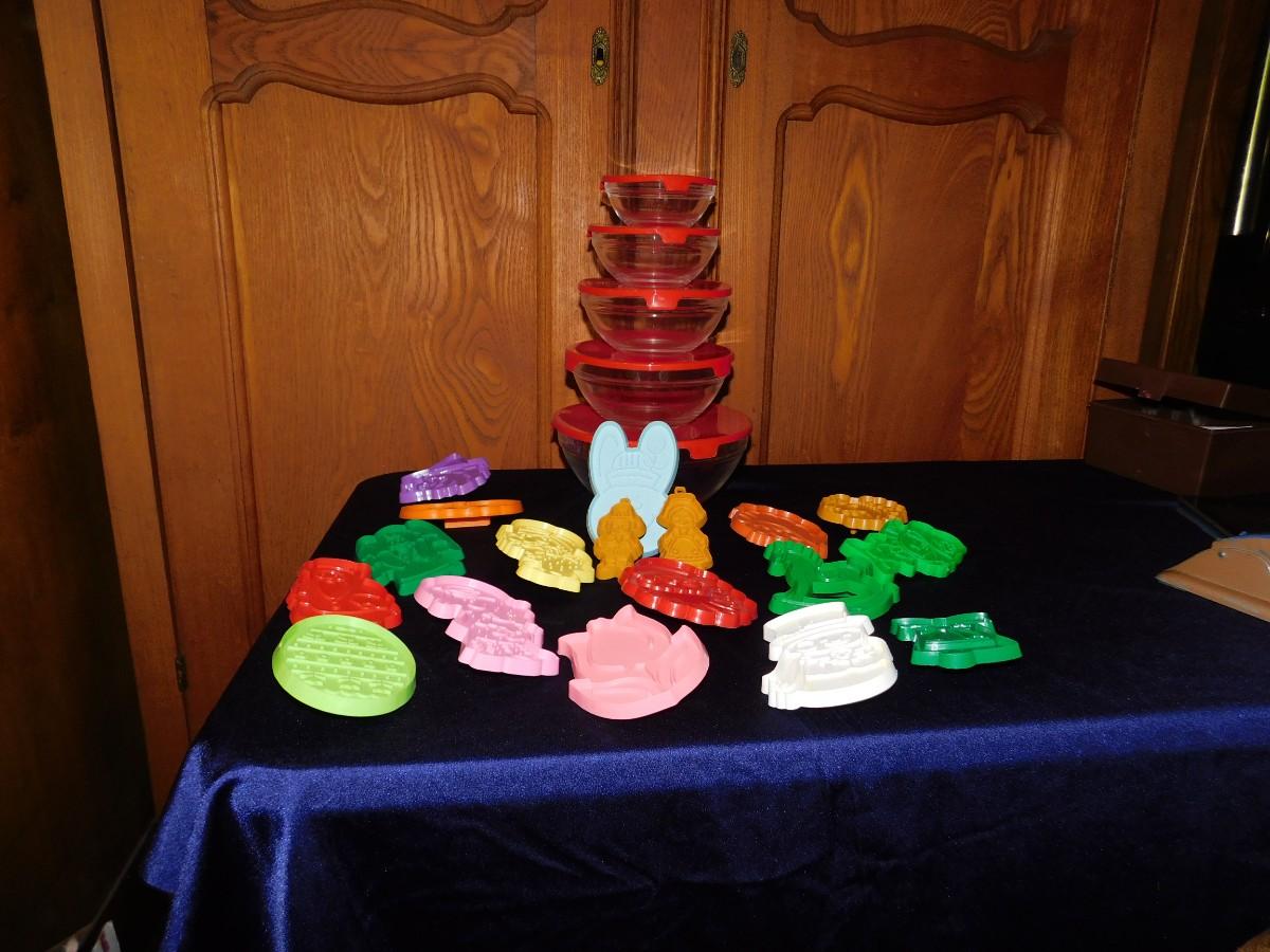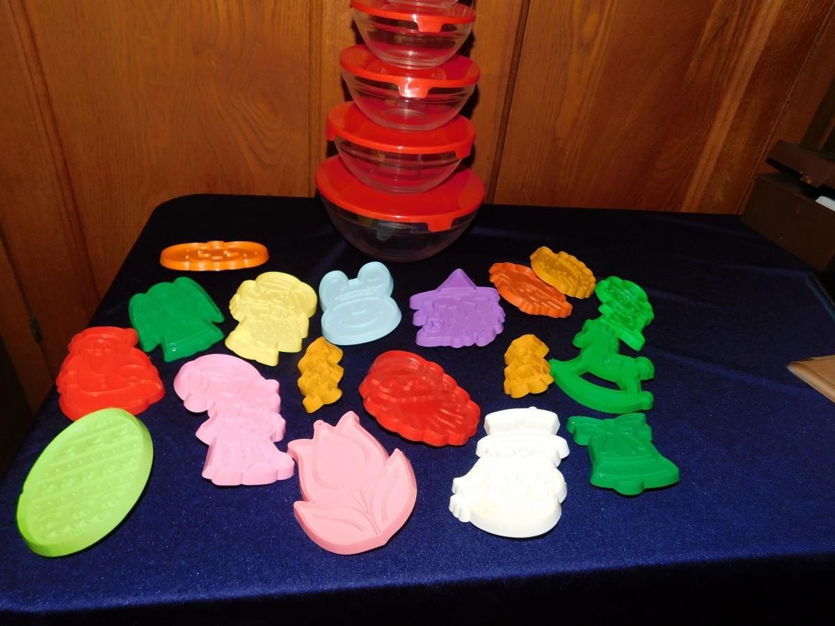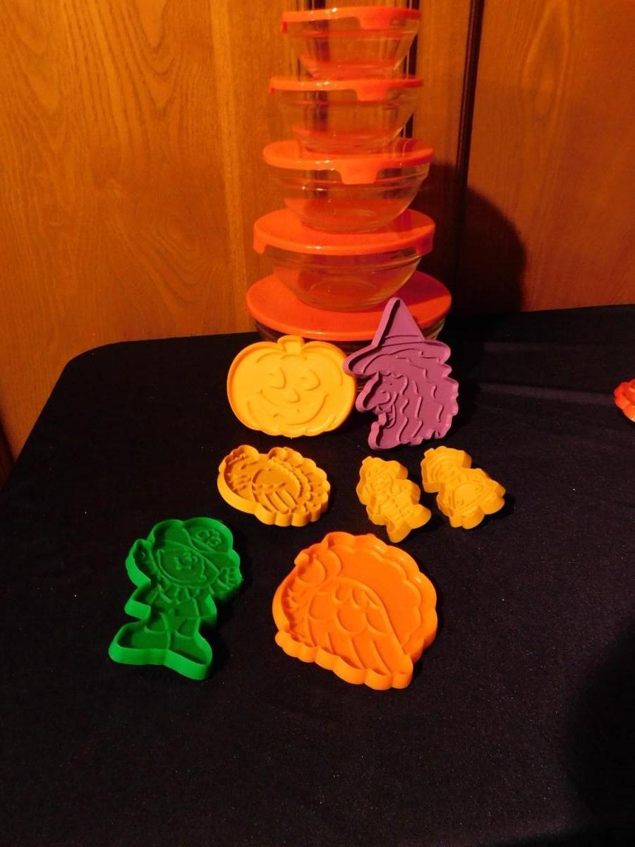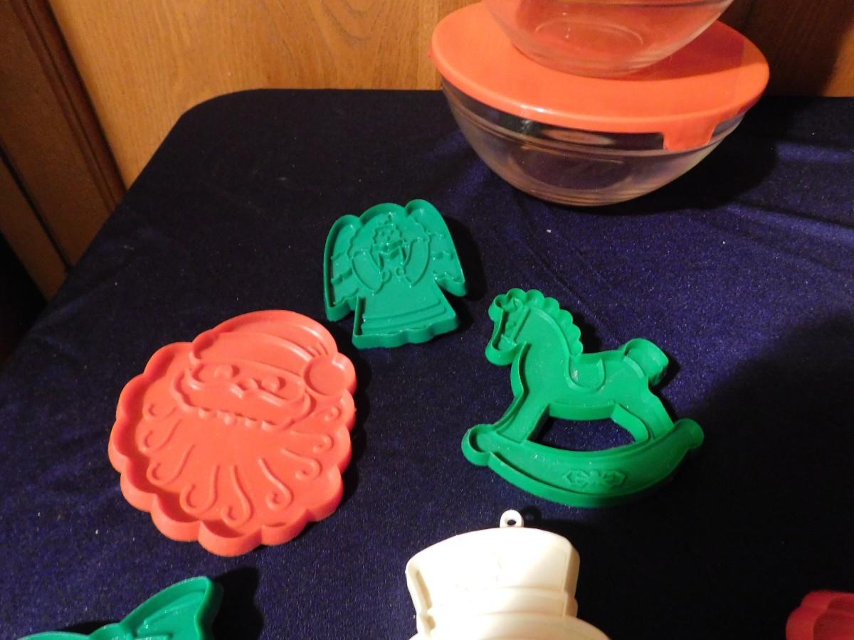 GLASS NESTING BOWLS WITH LIDS AND REALLY NEAT HALLMARK COOKIE CUTTERS