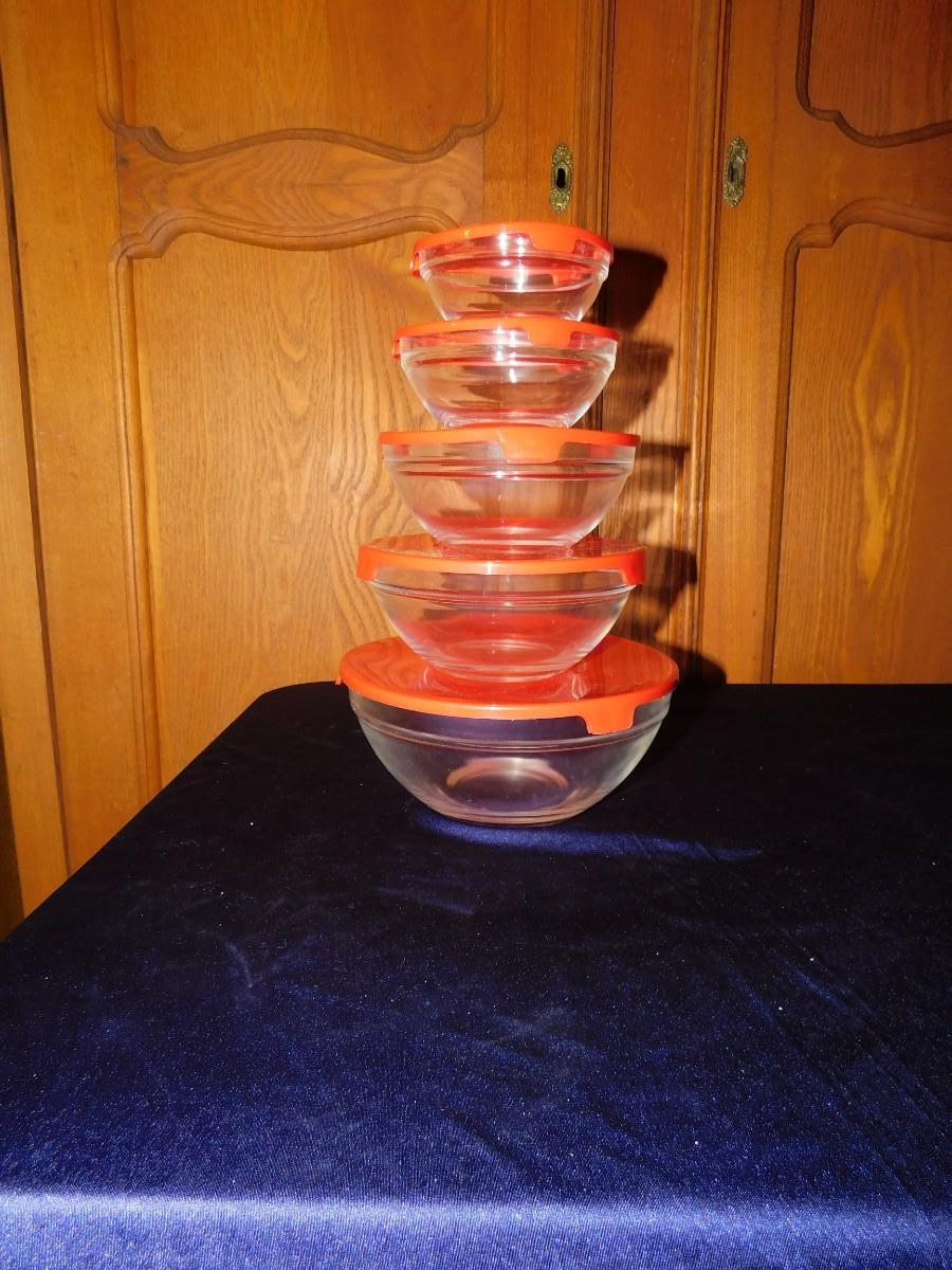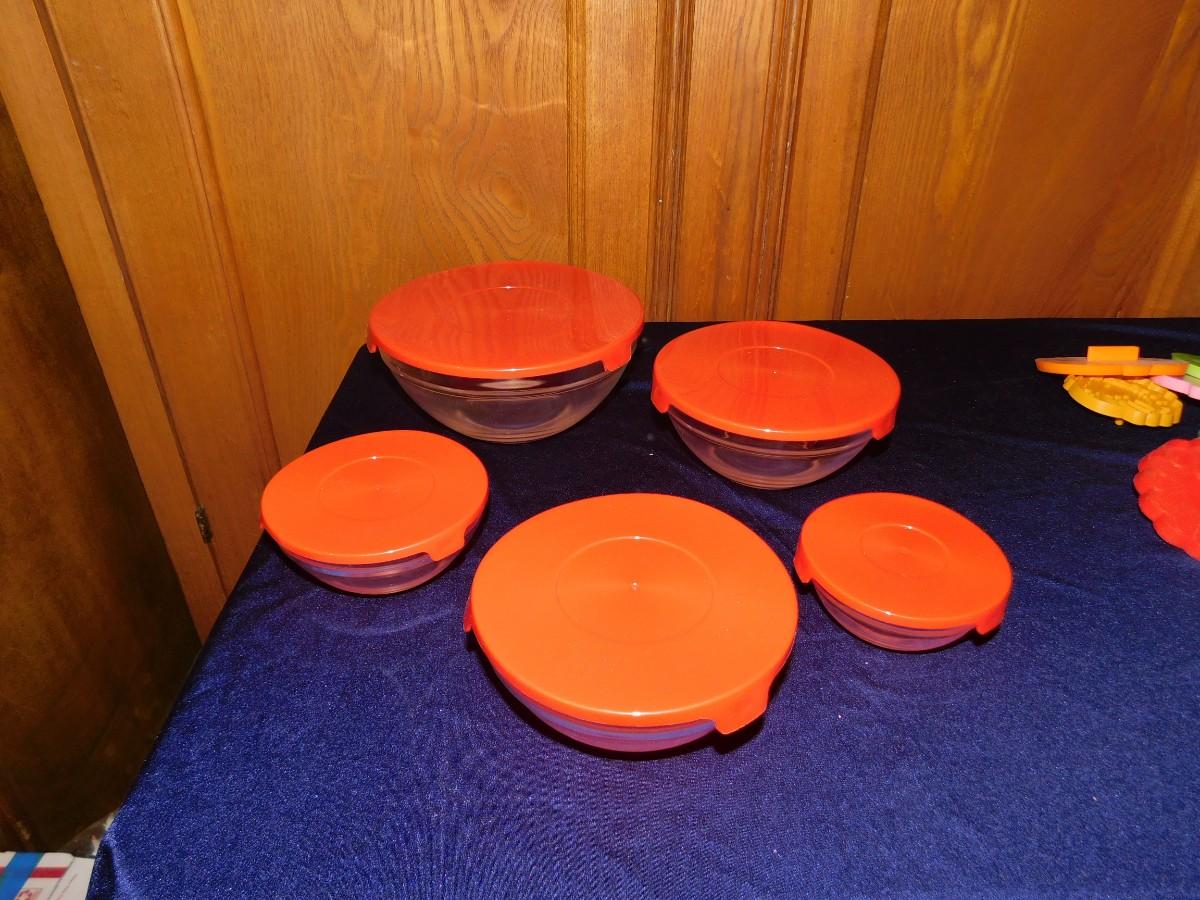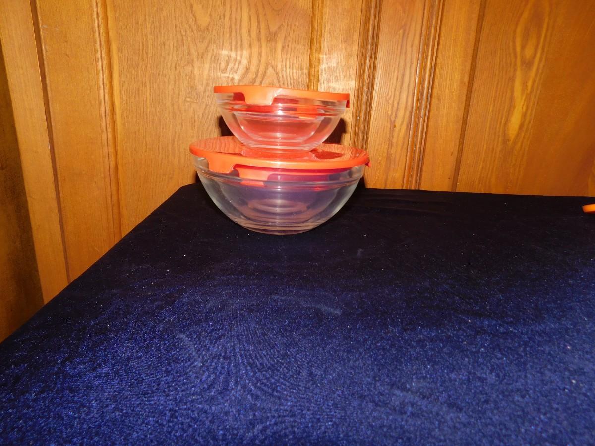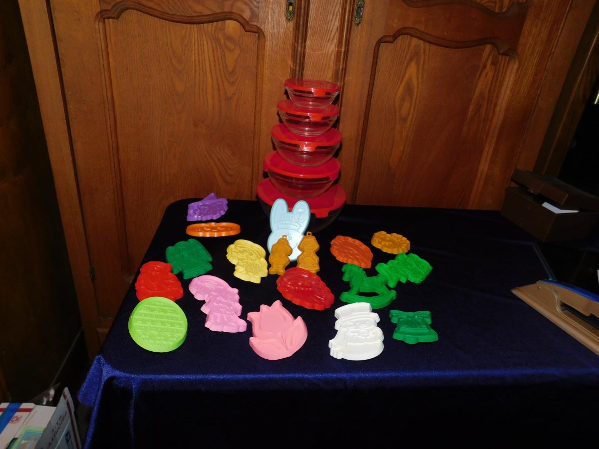 GLASS NESTING BOWLS WITH LIDS AND REALLY NEAT HALLMARK COOKIE CUTTERS