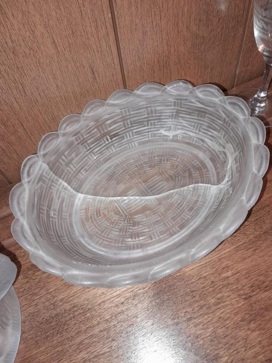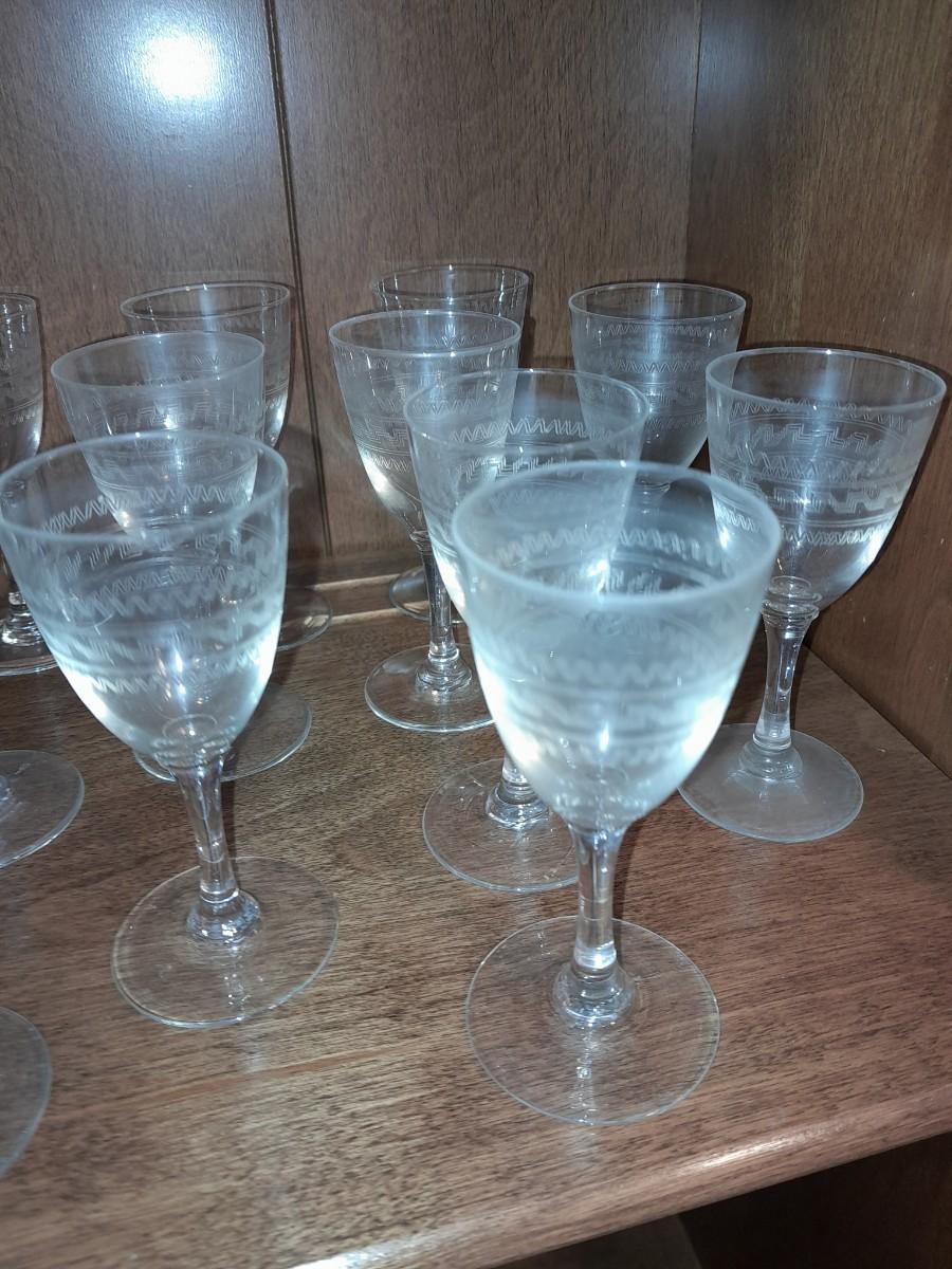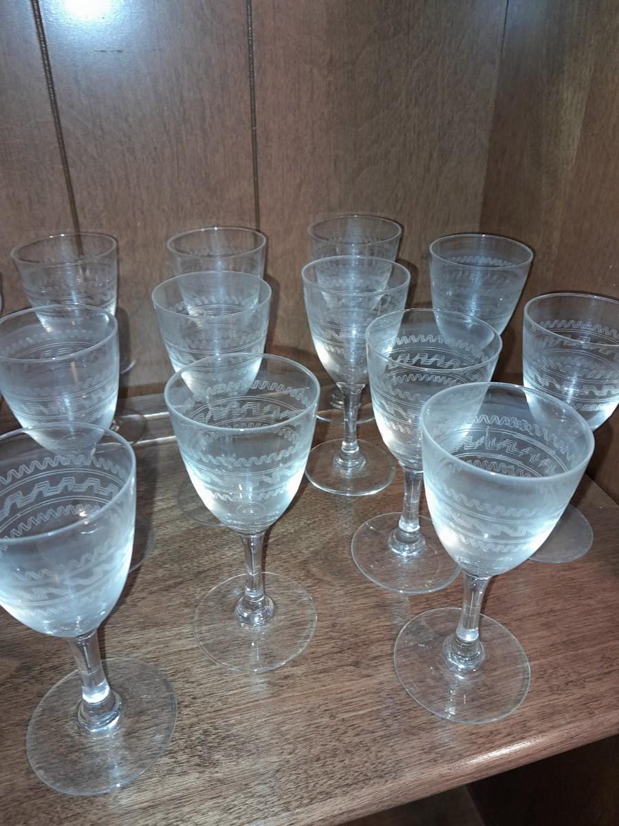 GLASS NESTING CHICKEN (crack in base of nest) AND 12 SMALL STEMMED GLASSES