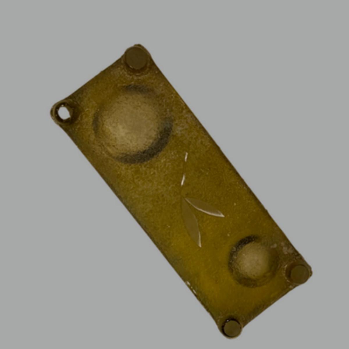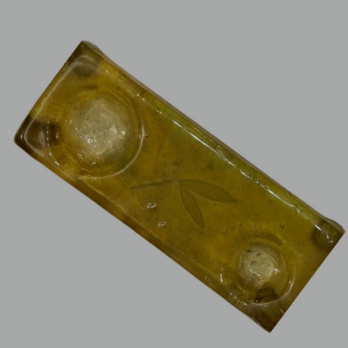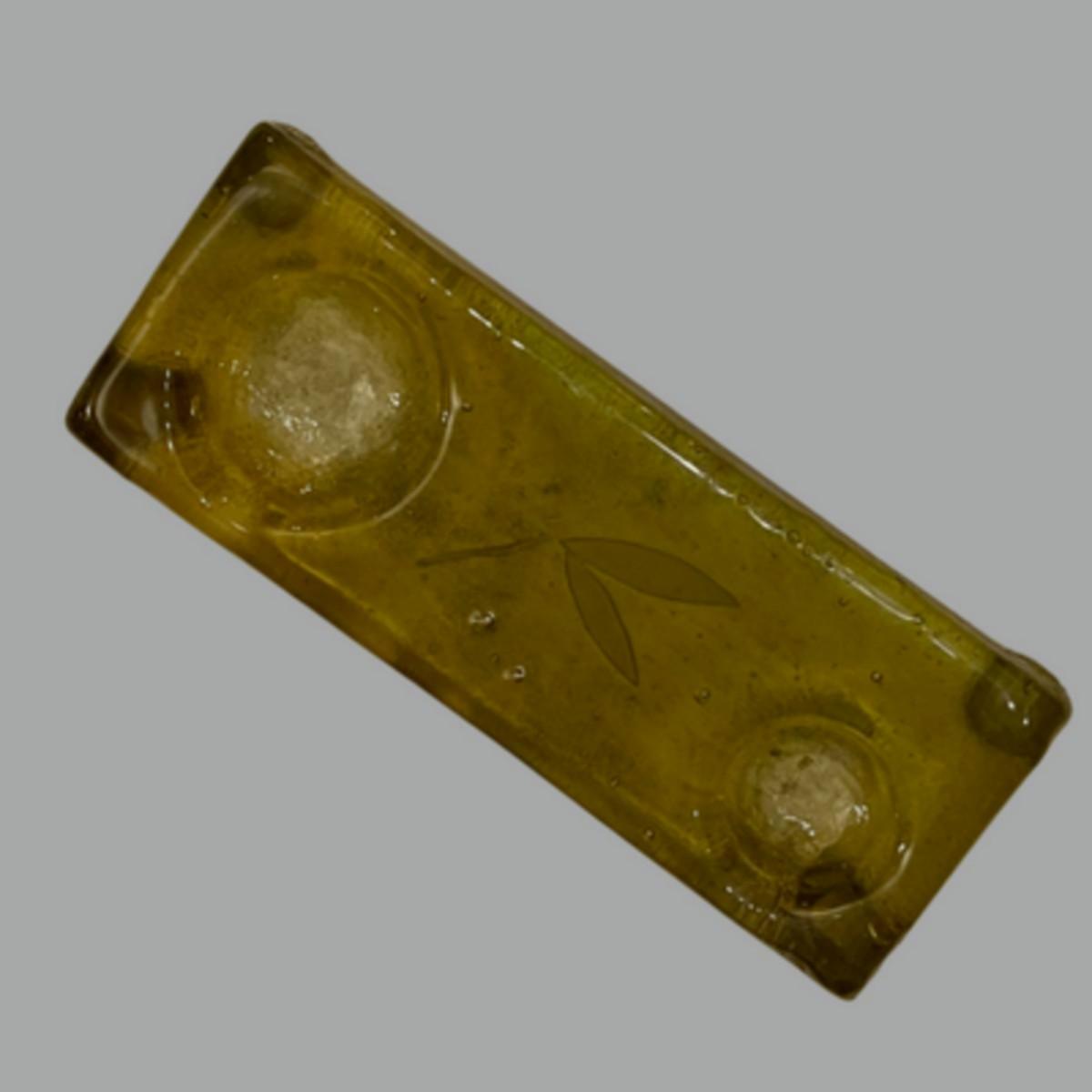 Mitchell Gaudet is a phenomenal glass artist from Waveland, Mississippi. He owns Studio Inferno and definitely comes up with one of a kind pieces. This is a glass olive serving tray with an olive leaf embedded in the glass. Measures 16 x 7.