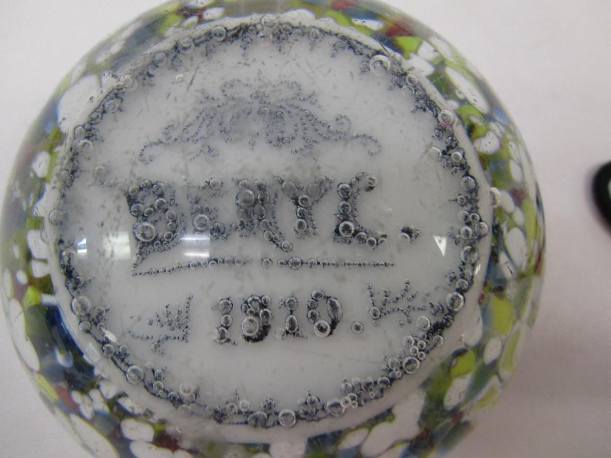 Glass Paperweight Dated 1910 "Beryl" Surface Scratches Ho