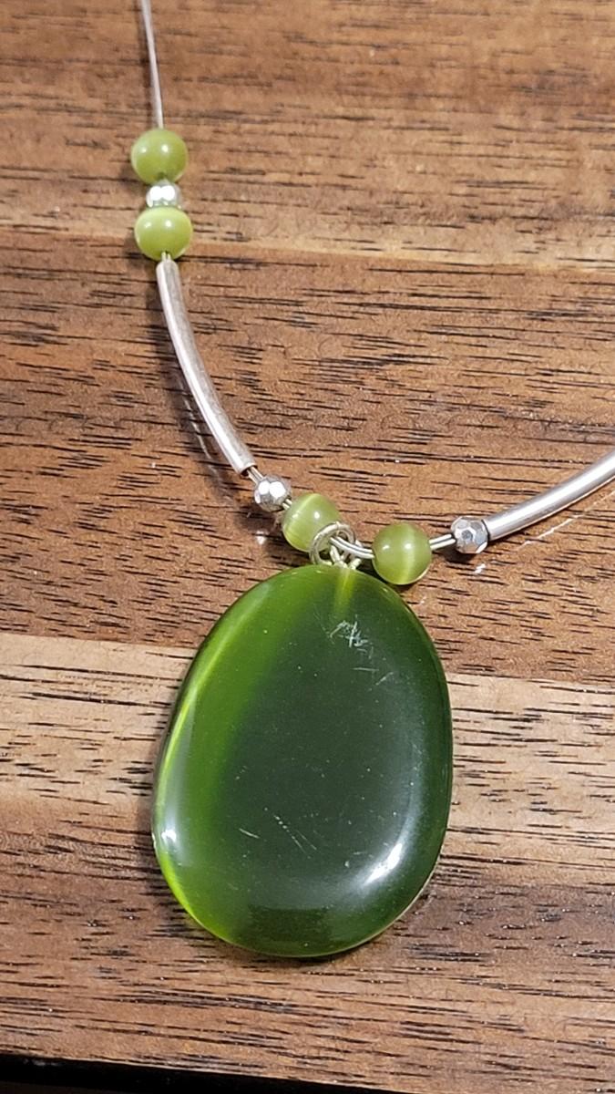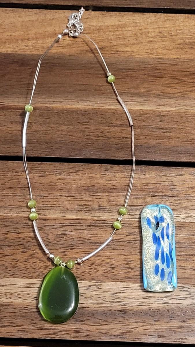 Green Glass necklace and blue glass pendant