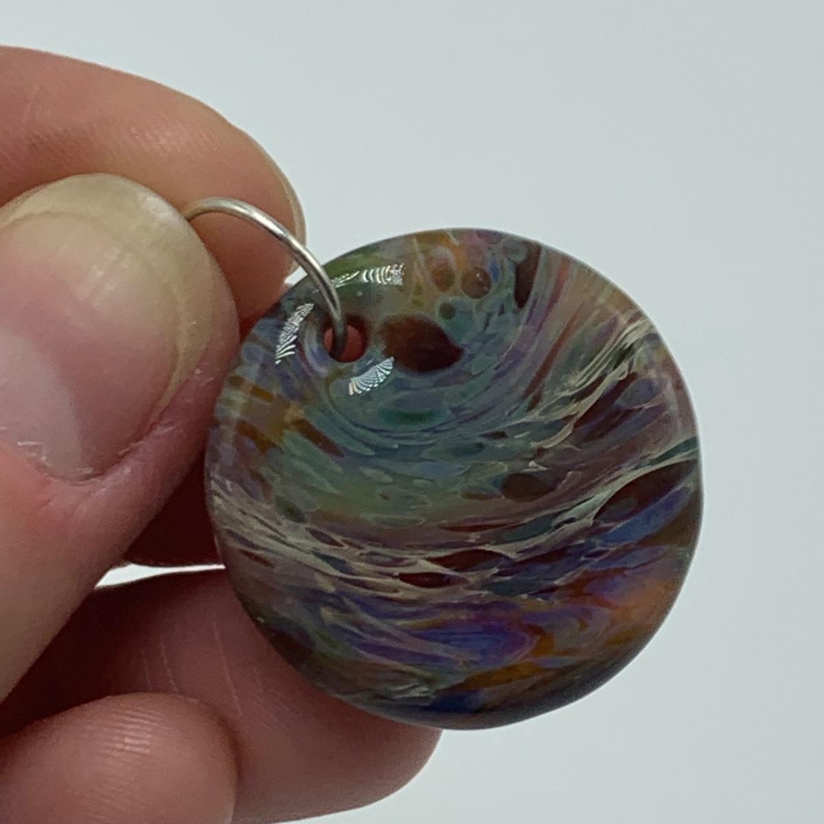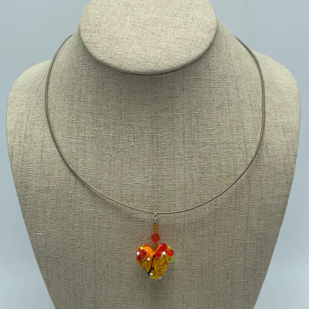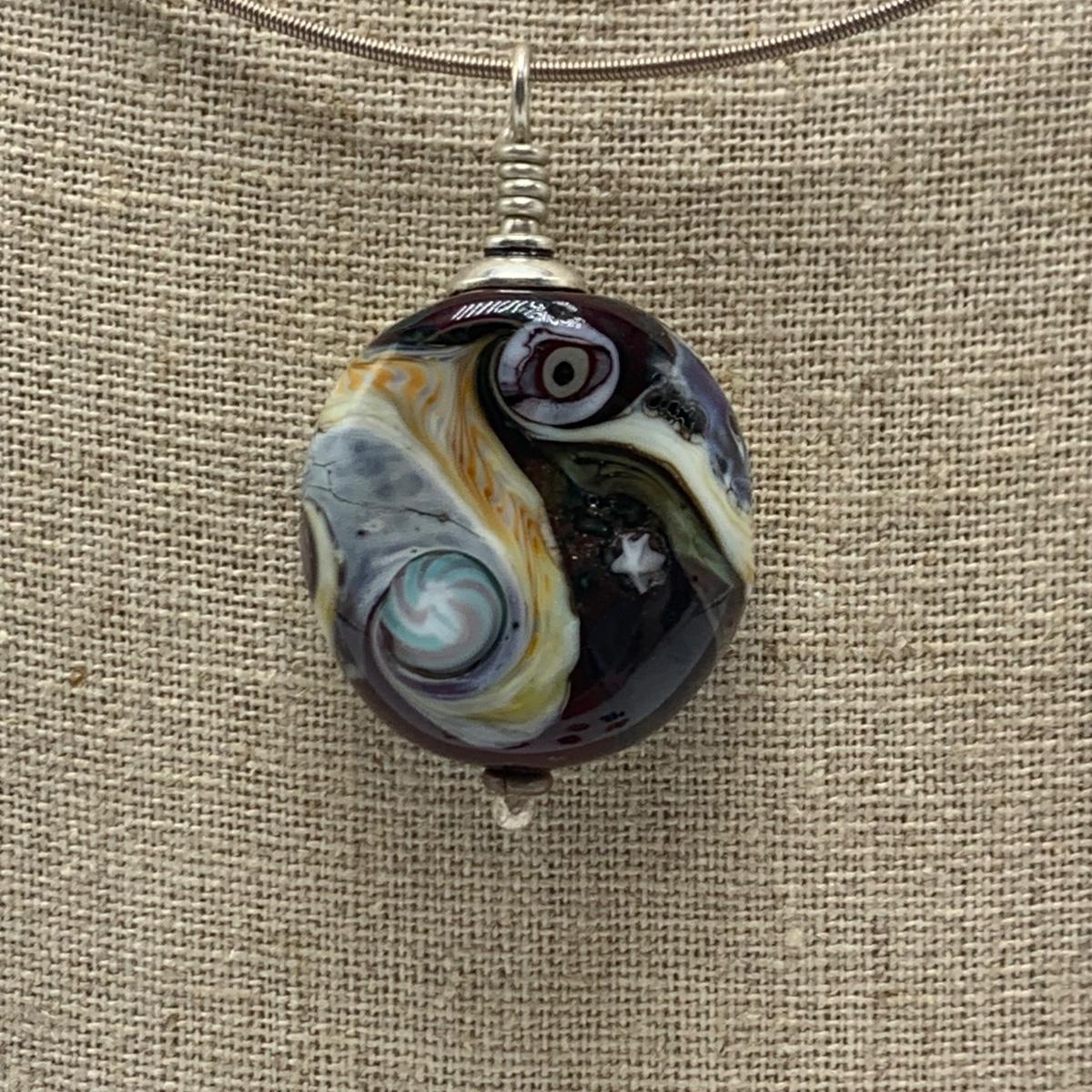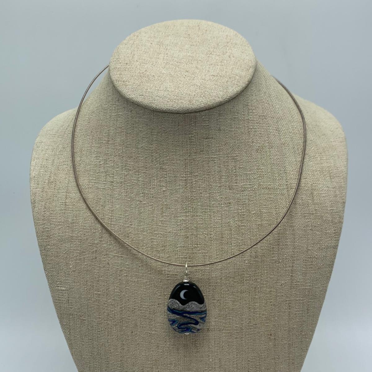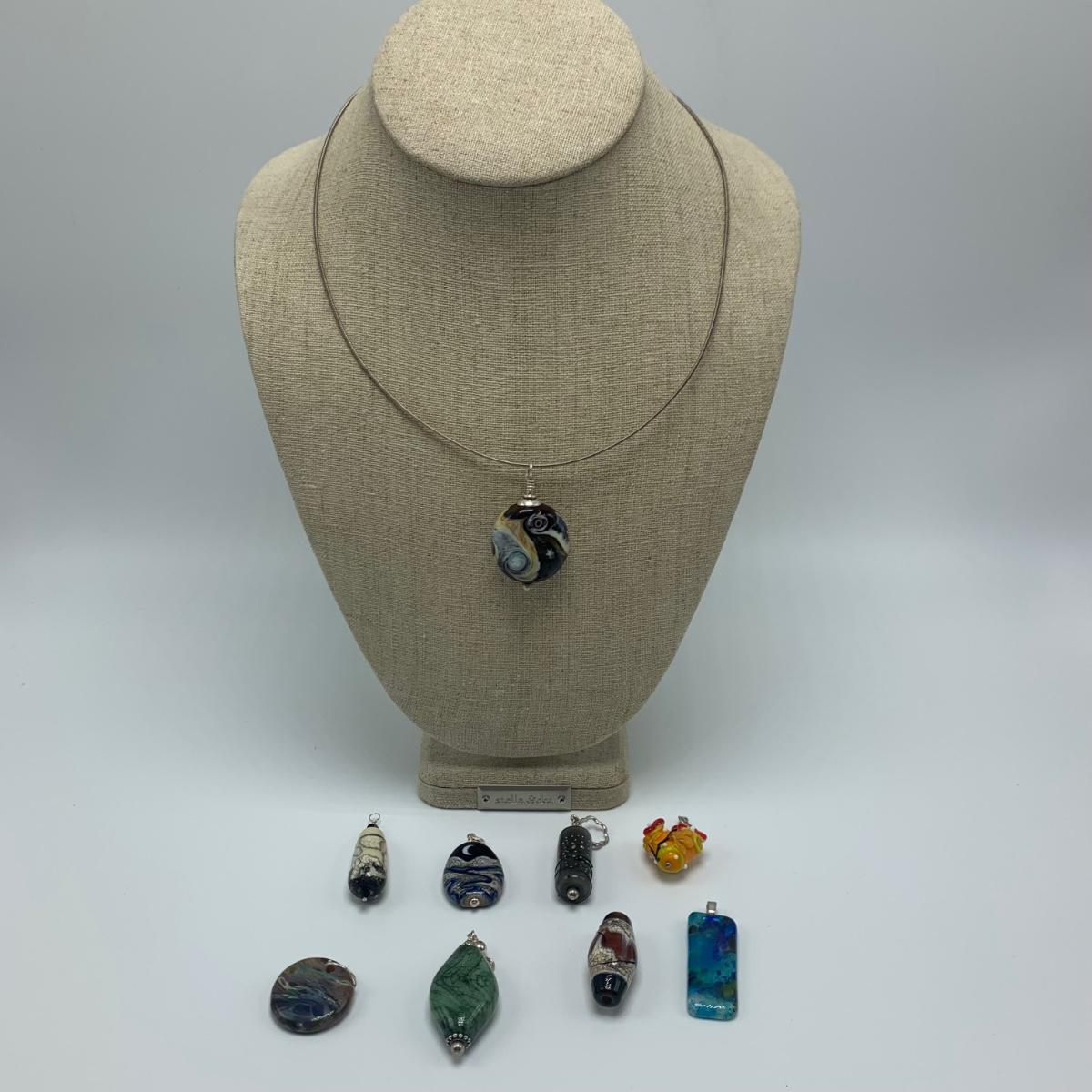 Nine glass pendants and beads with four necklaces, two of which are black cord and two are silver metal. Necklaces range in size from 18” to 27”. All sales are final. No returns or refunds. Please bid accordingly.