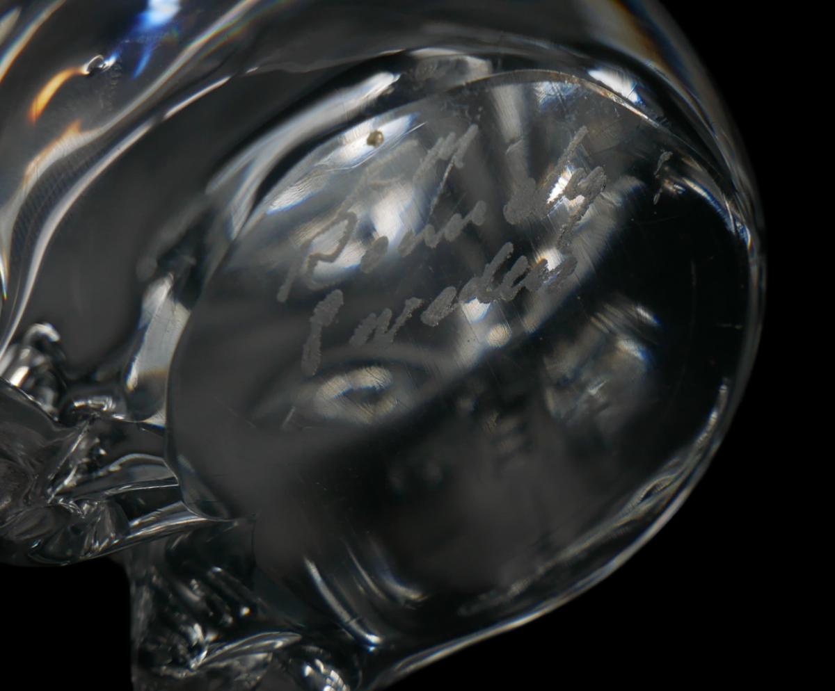Handmade glass penguin sculpture inscribed with artist's signature and "Sweden" on bottom. Penguin measures W 1.75" x H 5". Fish measures W 4.75" x H 4" and is unsigned. Lot measures 1 lb 10 oz. (D10)