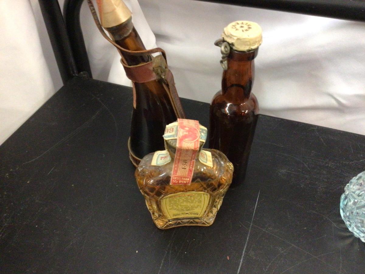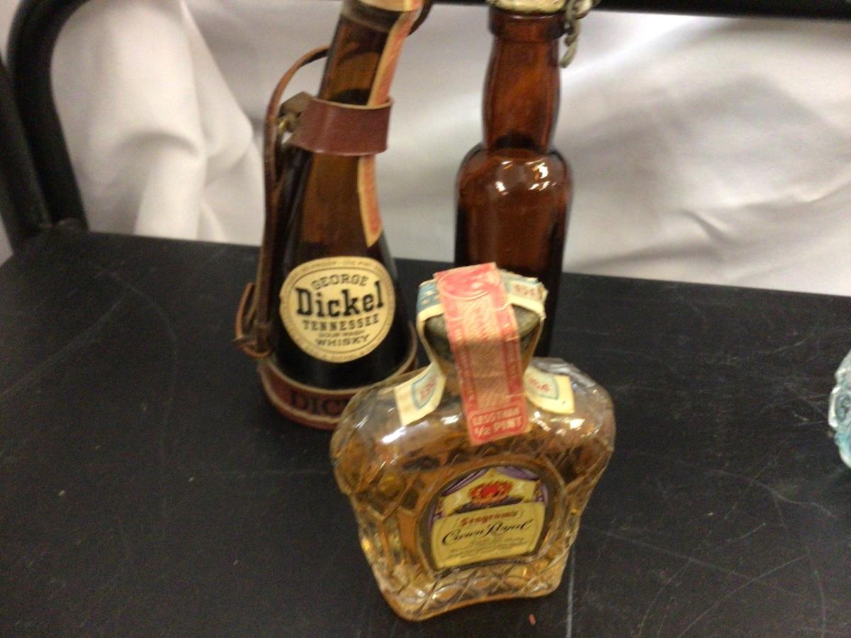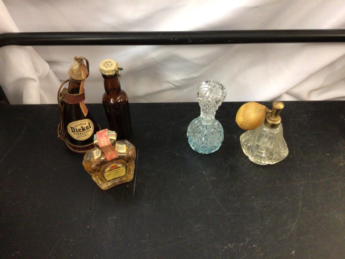 You get two glass perfumes, one has atomizer the other glass lid. There is also Crown Royal bottle and whiskey in oil and vinegar.