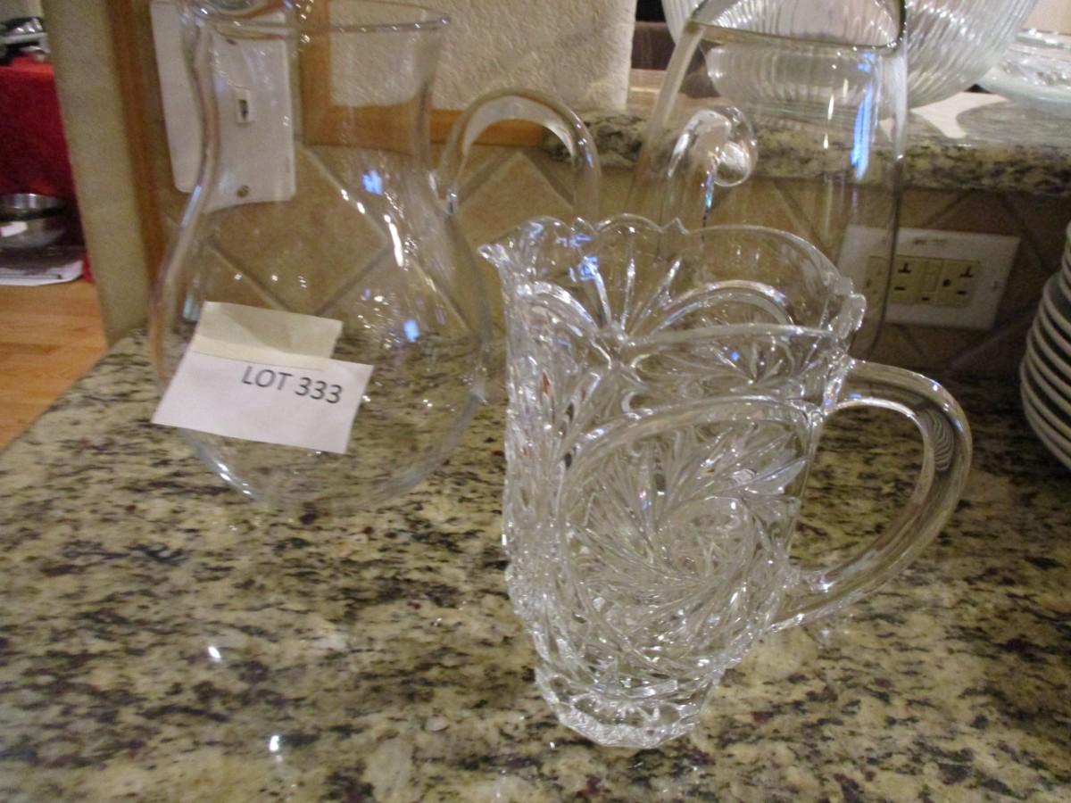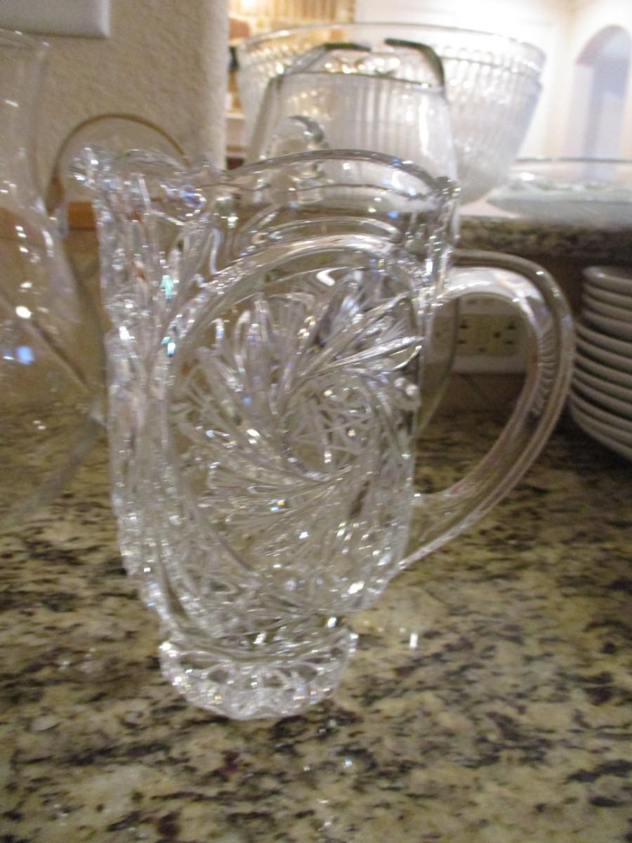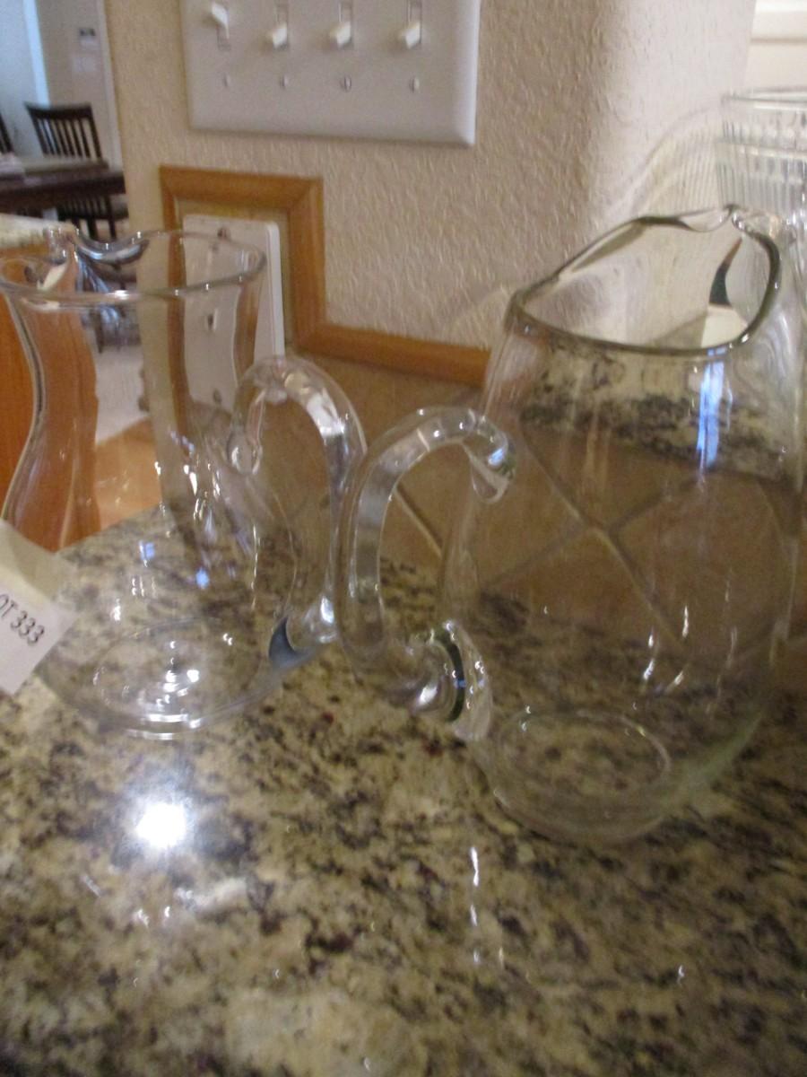 1 Pressed glass pitcher 2 glass pitchers. Excellent condition