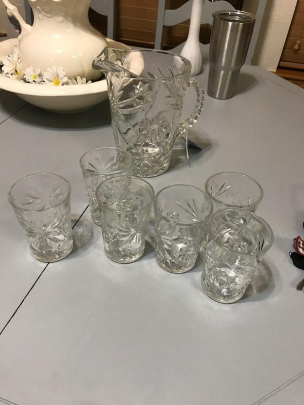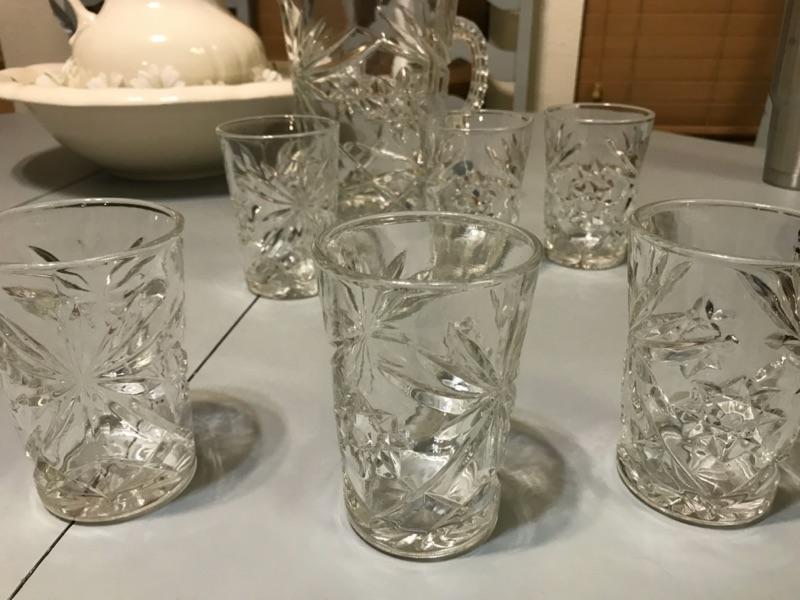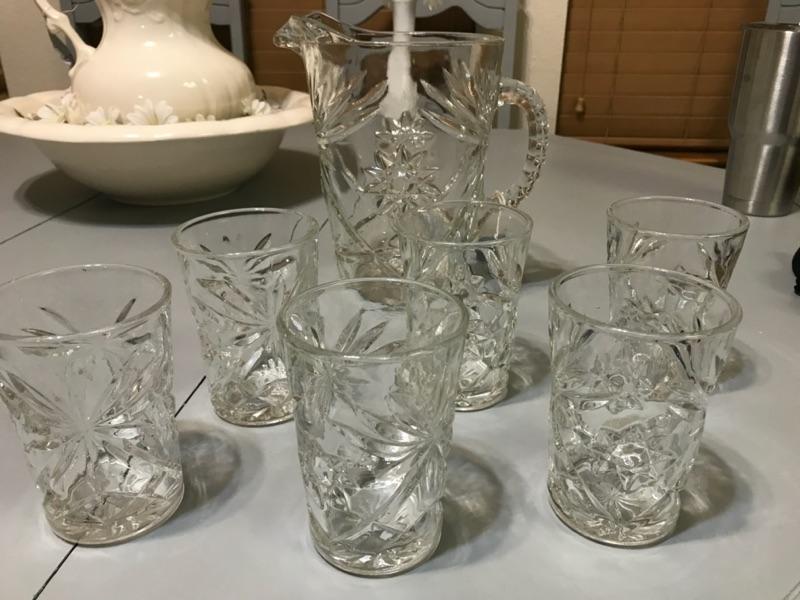Glass Pitcher and Six Cups