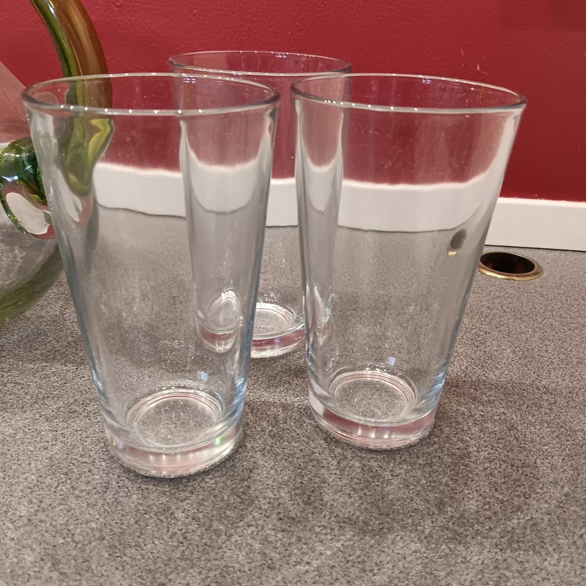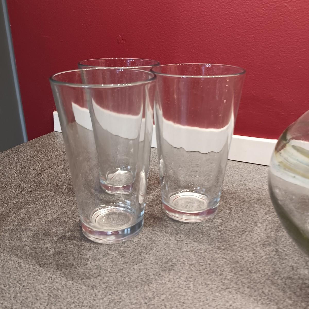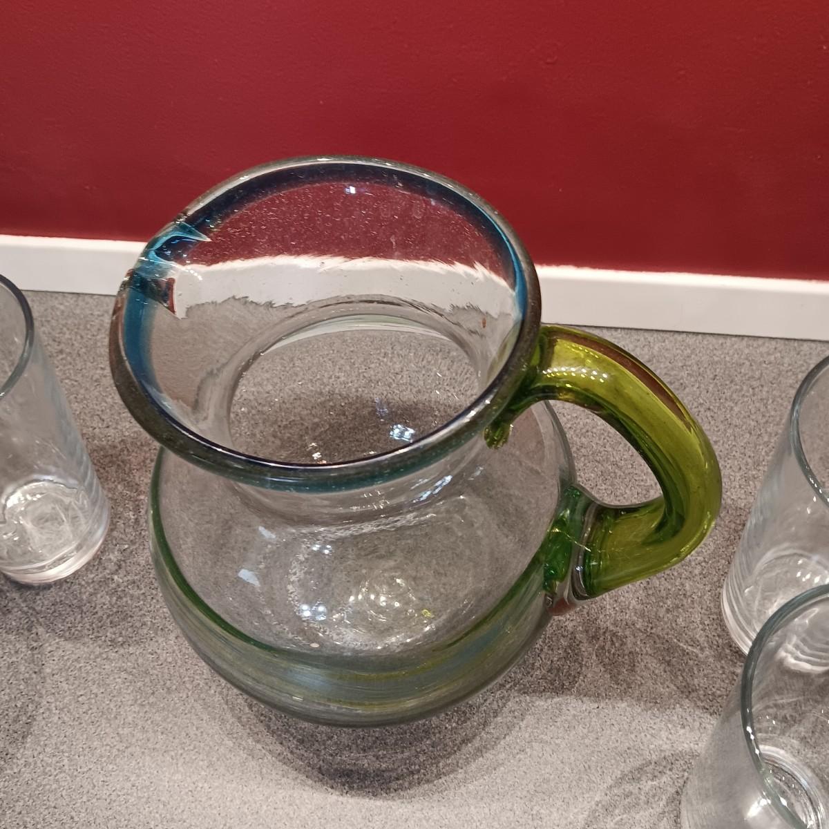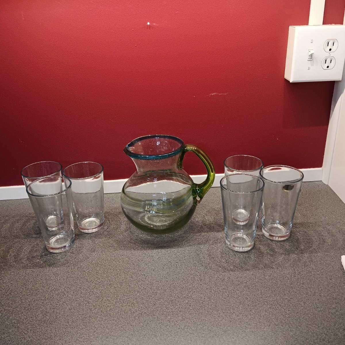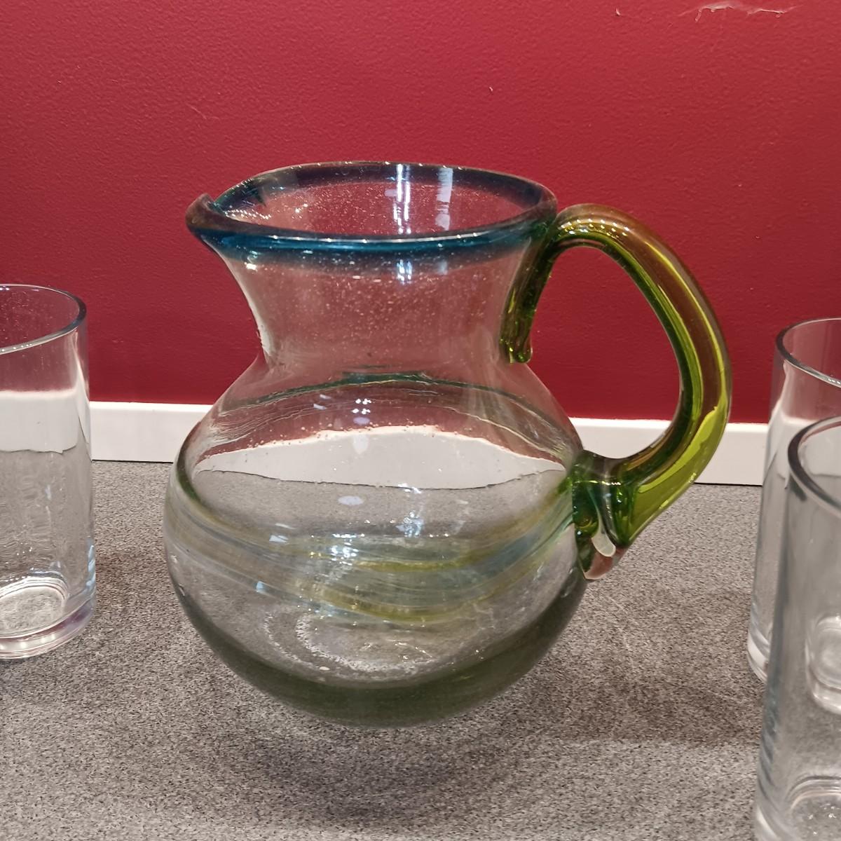 GLASS PITCHER WITH 6 DRINKING GLASSES