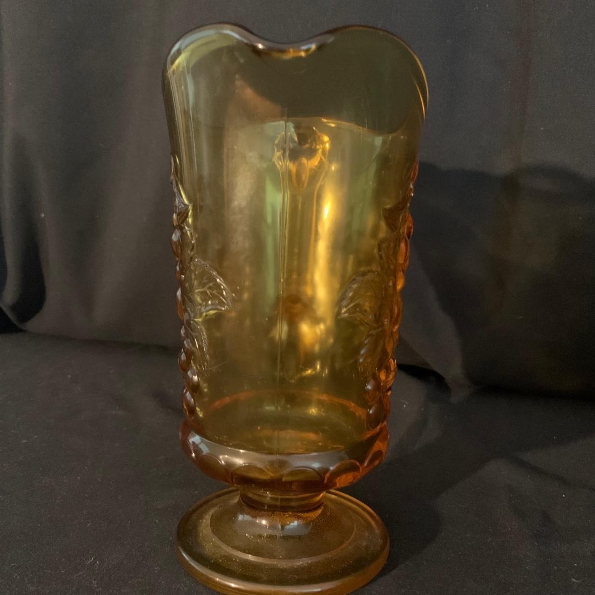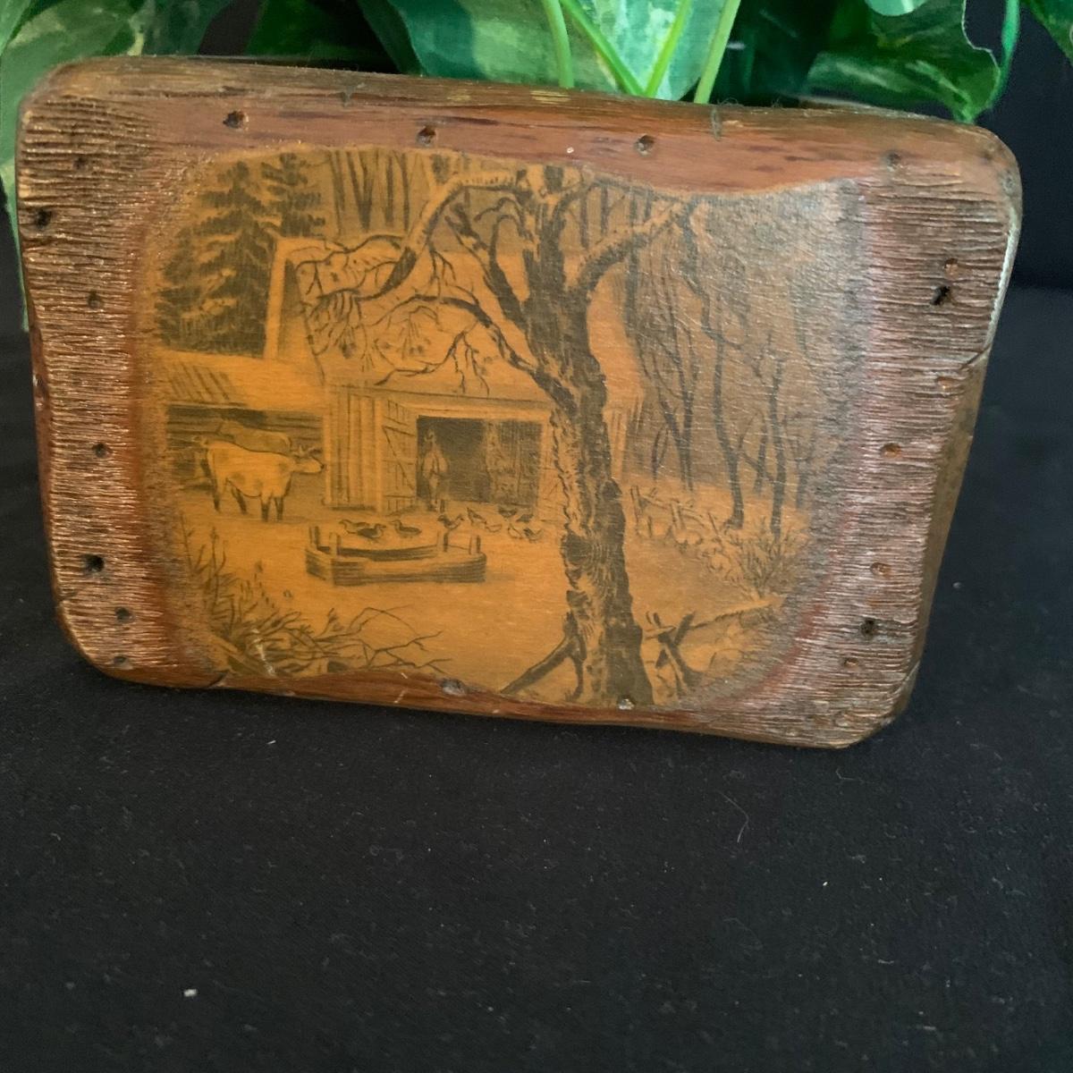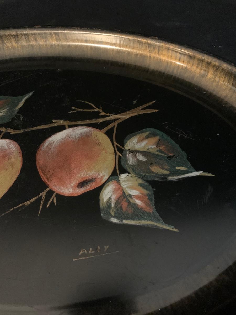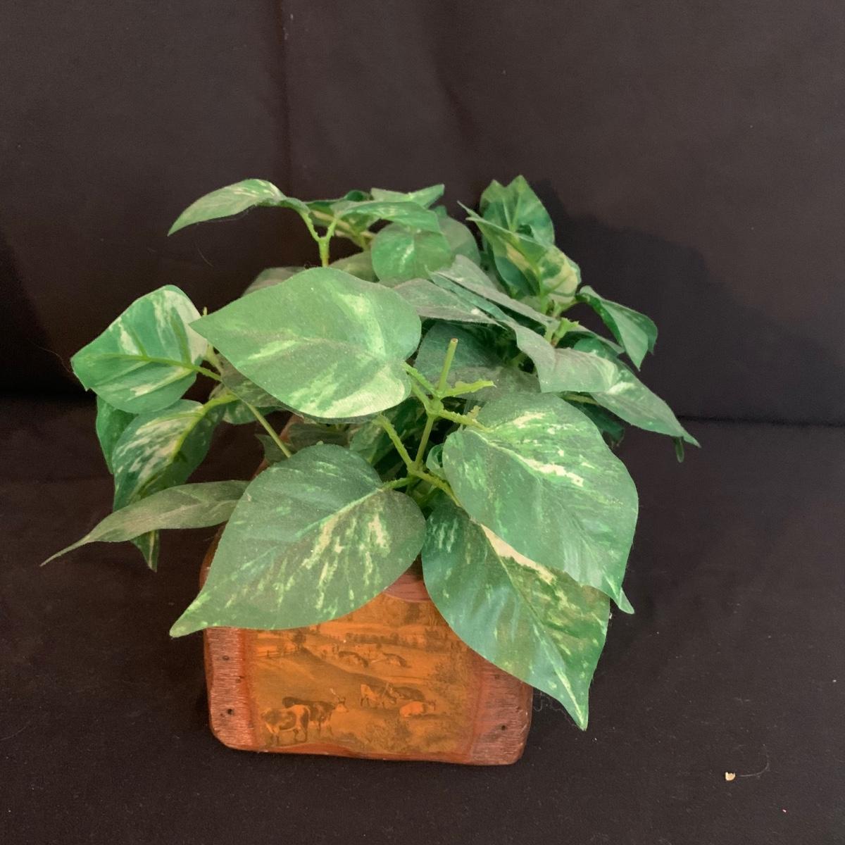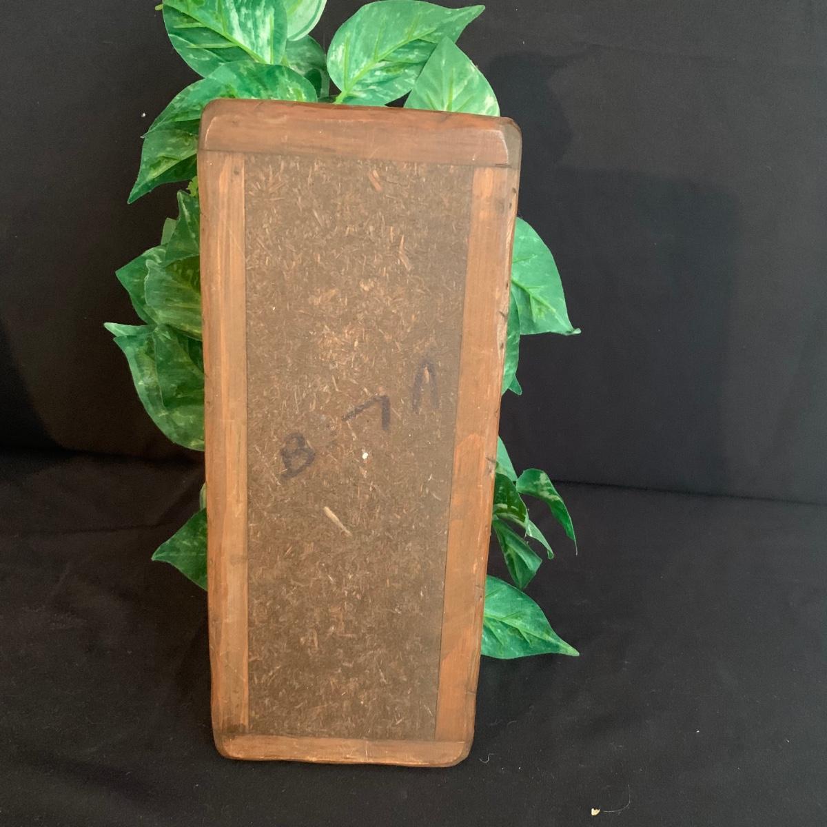 This lot includes two decorated glass pitchers, one metal tray, and one wooden plant holder. The wooden holder has a removable artificial plant inside. The metal platter has a hand-painted design and is made of a lightweight metal. The largest pitcher measures about 8.5" x 8". The wooden plant holder measures about 12" x 5.5". Shipping available.