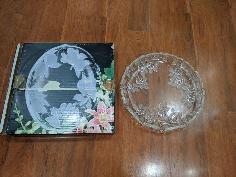 Frosted glass. About 12-13" in diameter. Made in Japan