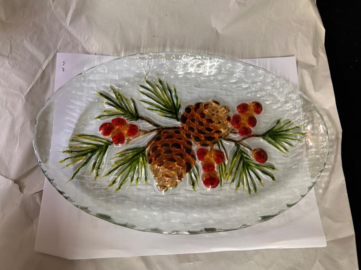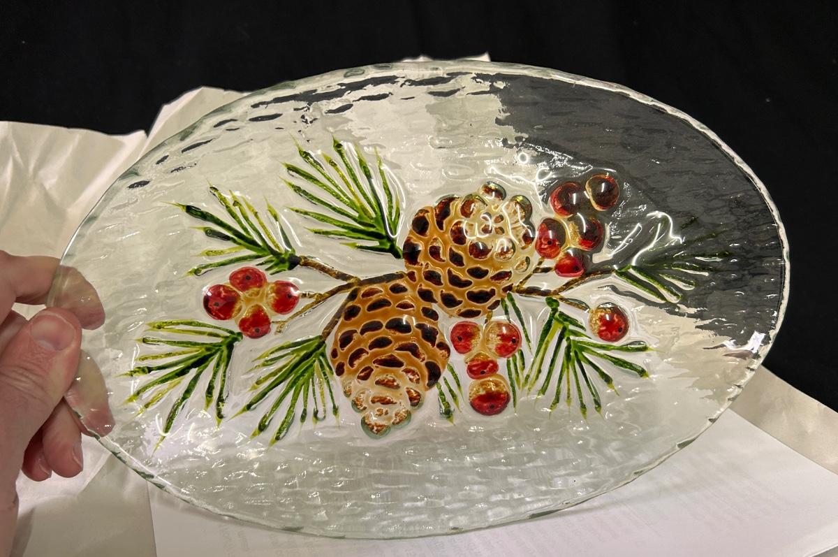 Glass platter, pinecone design