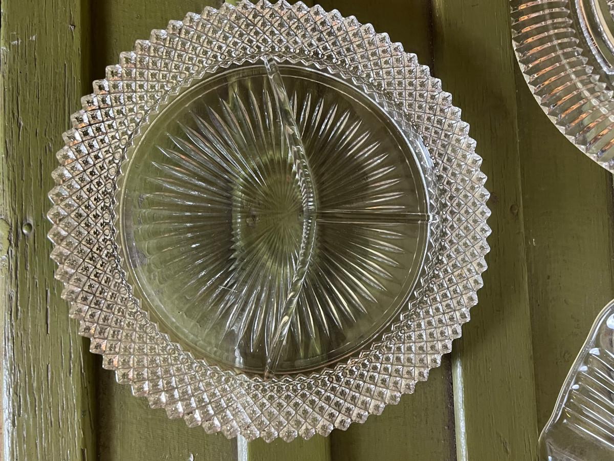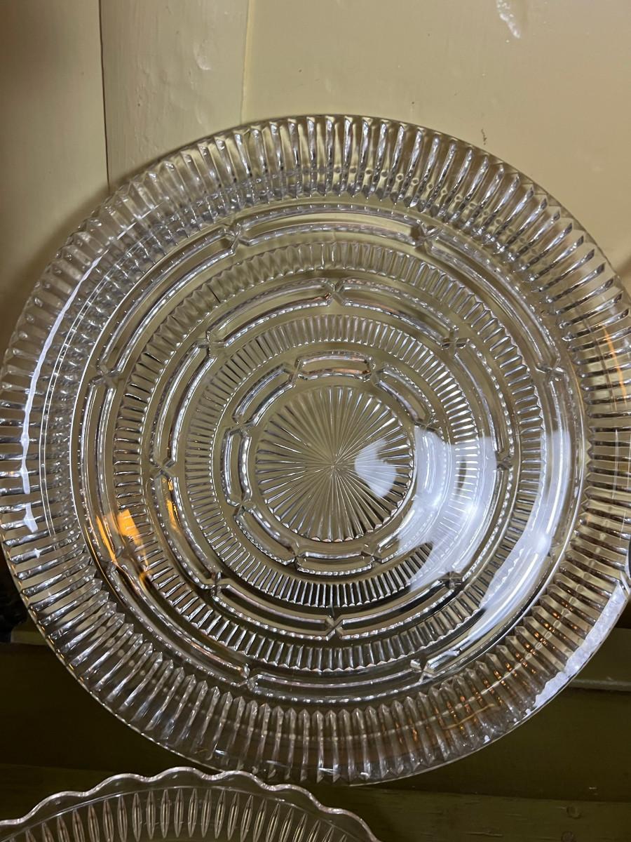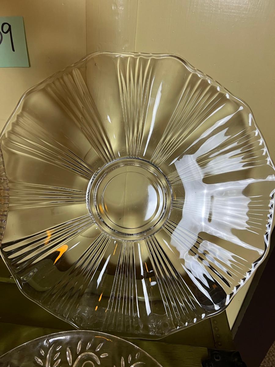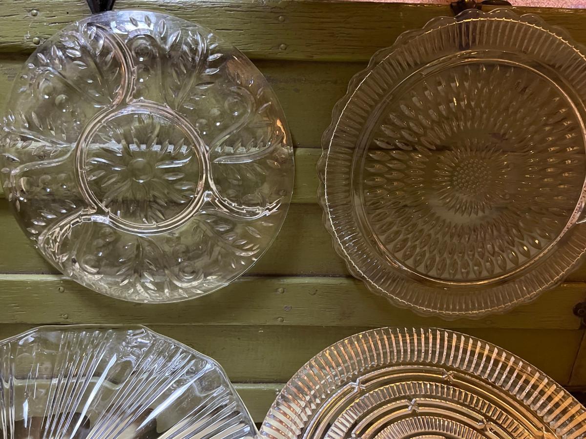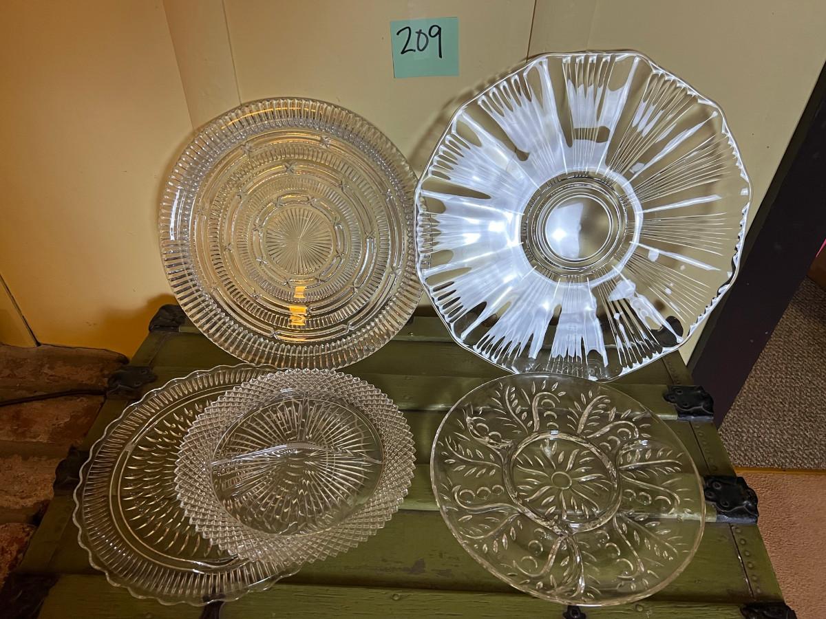 5 Glass Platters: 1. 16.5", 2. 12" diameter, 3. 11.5" diameter, 4. 10.5" diameter, 5. 14" diamter
