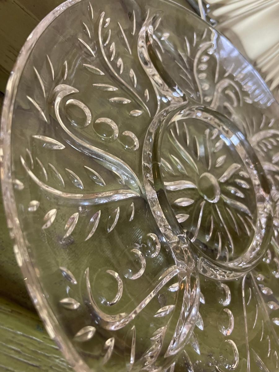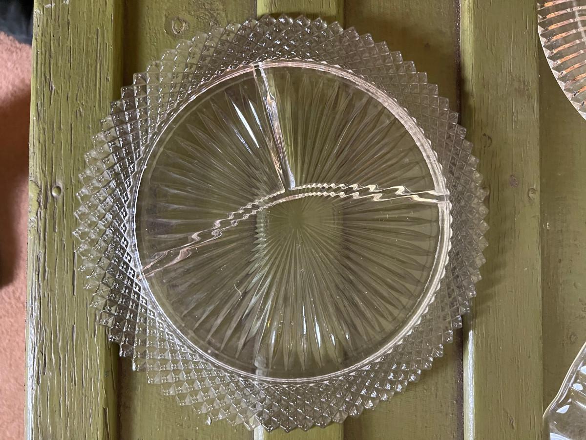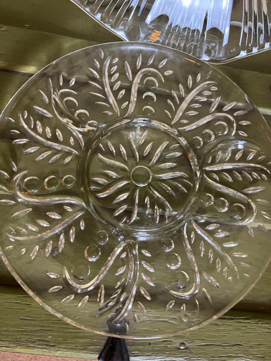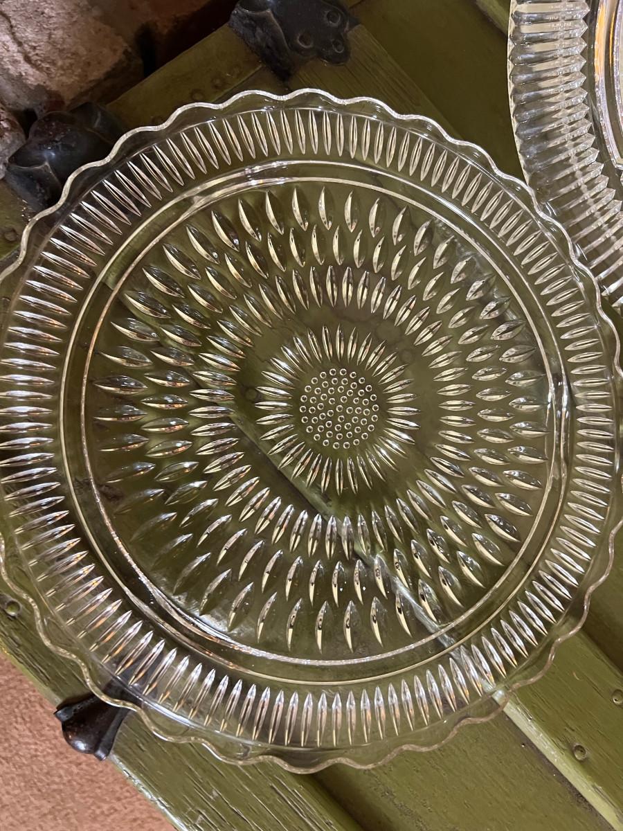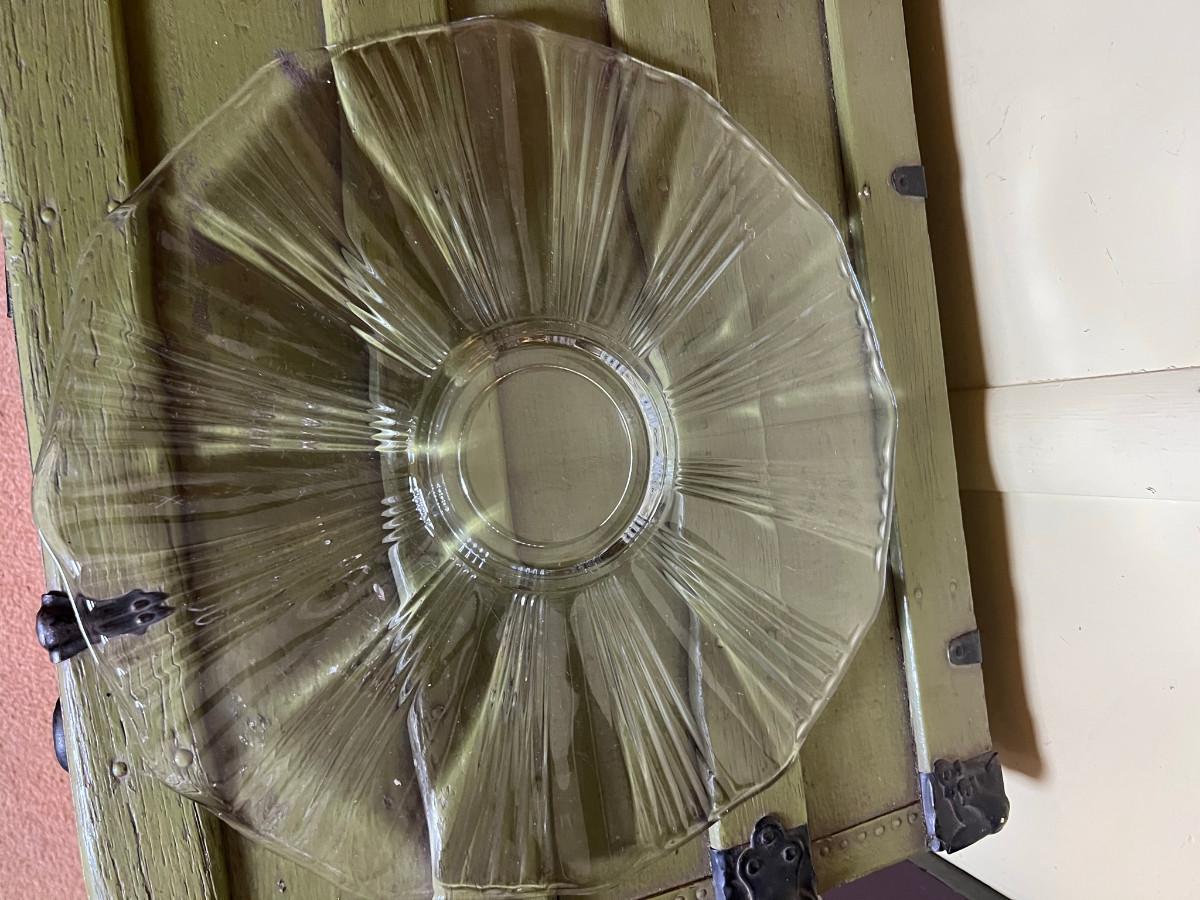 5 Glass Platters: 1. 16.5", 2. 12" diameter, 3. 11.5" diameter, 4. 10.5" diameter, 5. 14" diamter