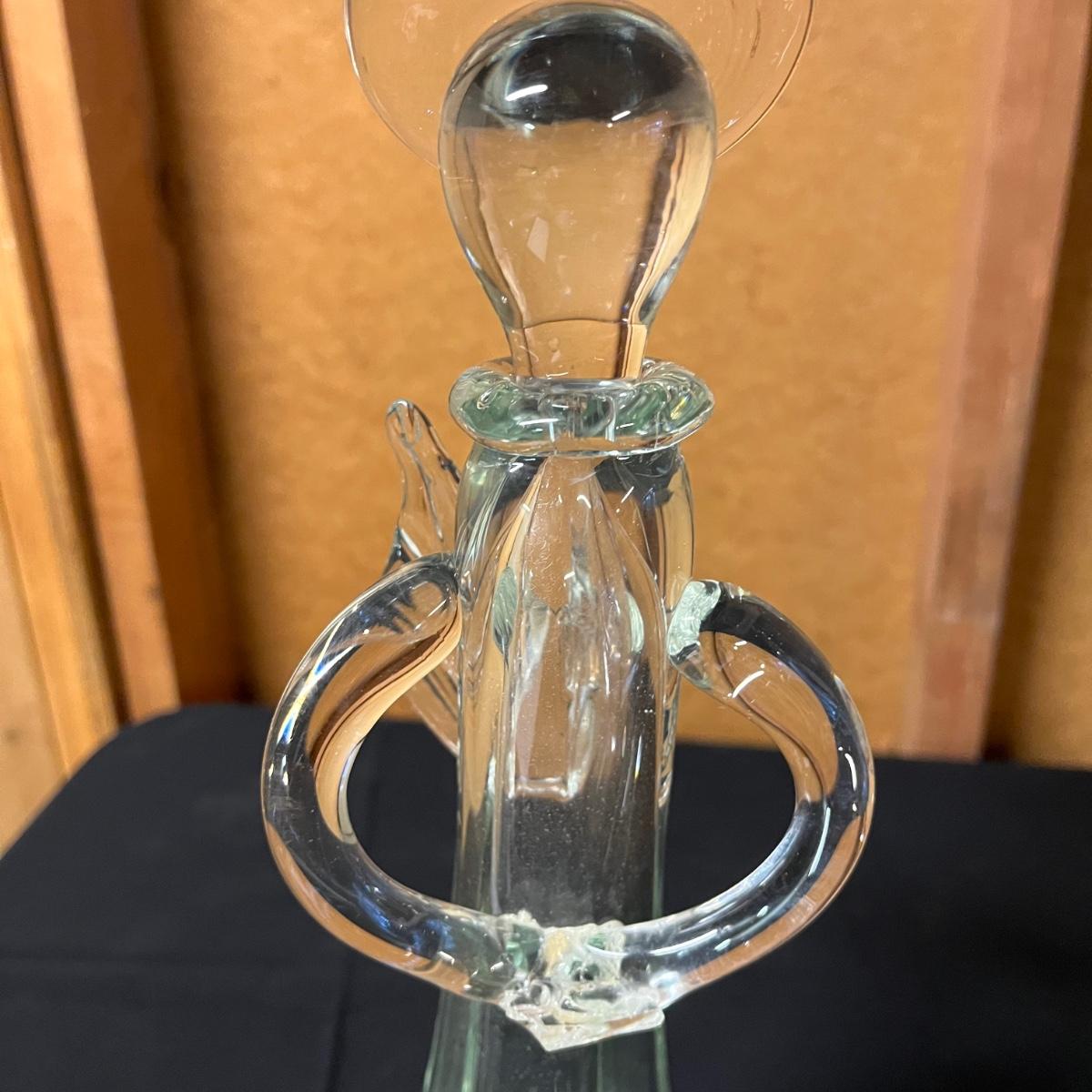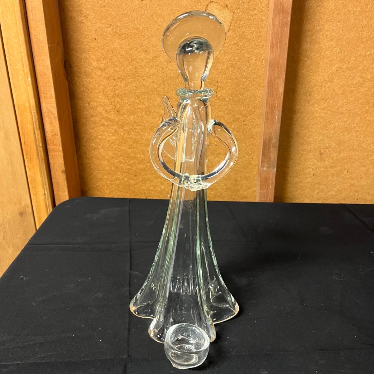 Lot includes two glass praying angels tea light holders. The smaller one has the tea light holder broken off, but appears to be a easy fix, see pictures. Largest angel measures 7”D x 20” tall.
