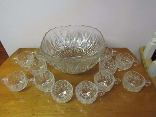 Glass Punch Bowl with 12 Cups