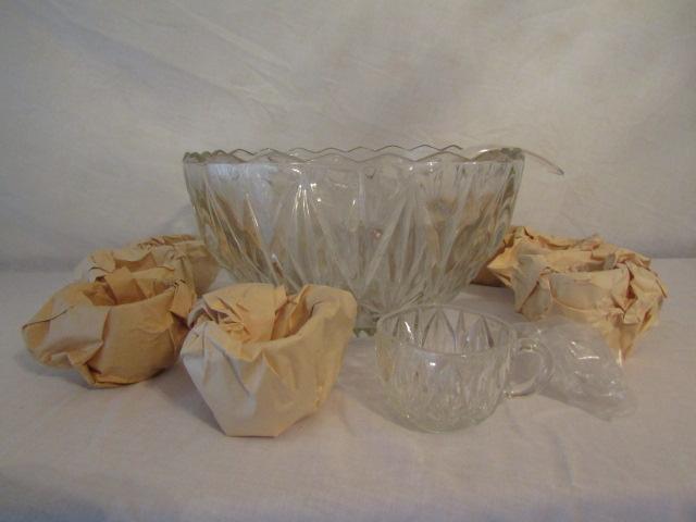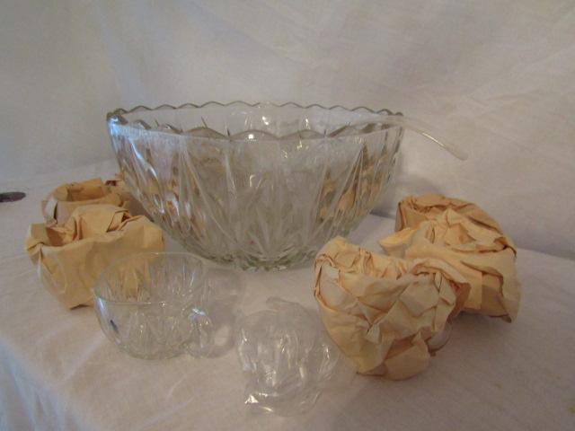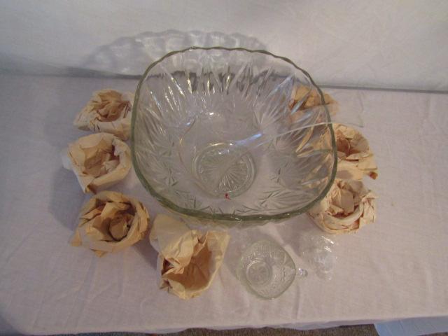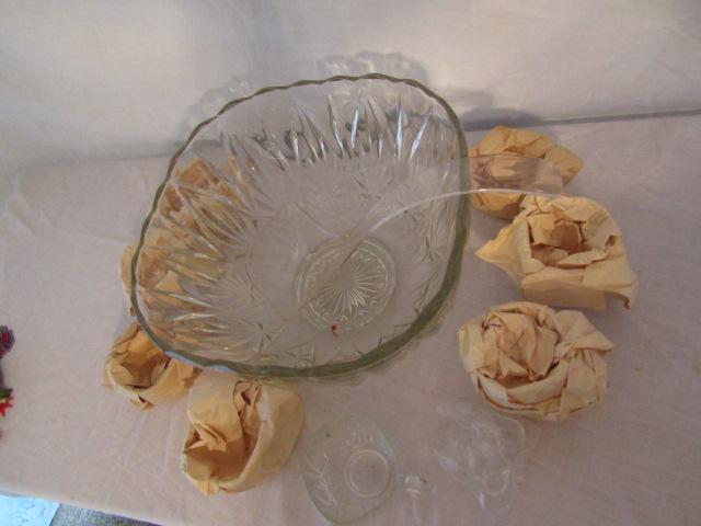 Glass Punch Bowl with 8 Cups, Ladle, and Cup Hooks