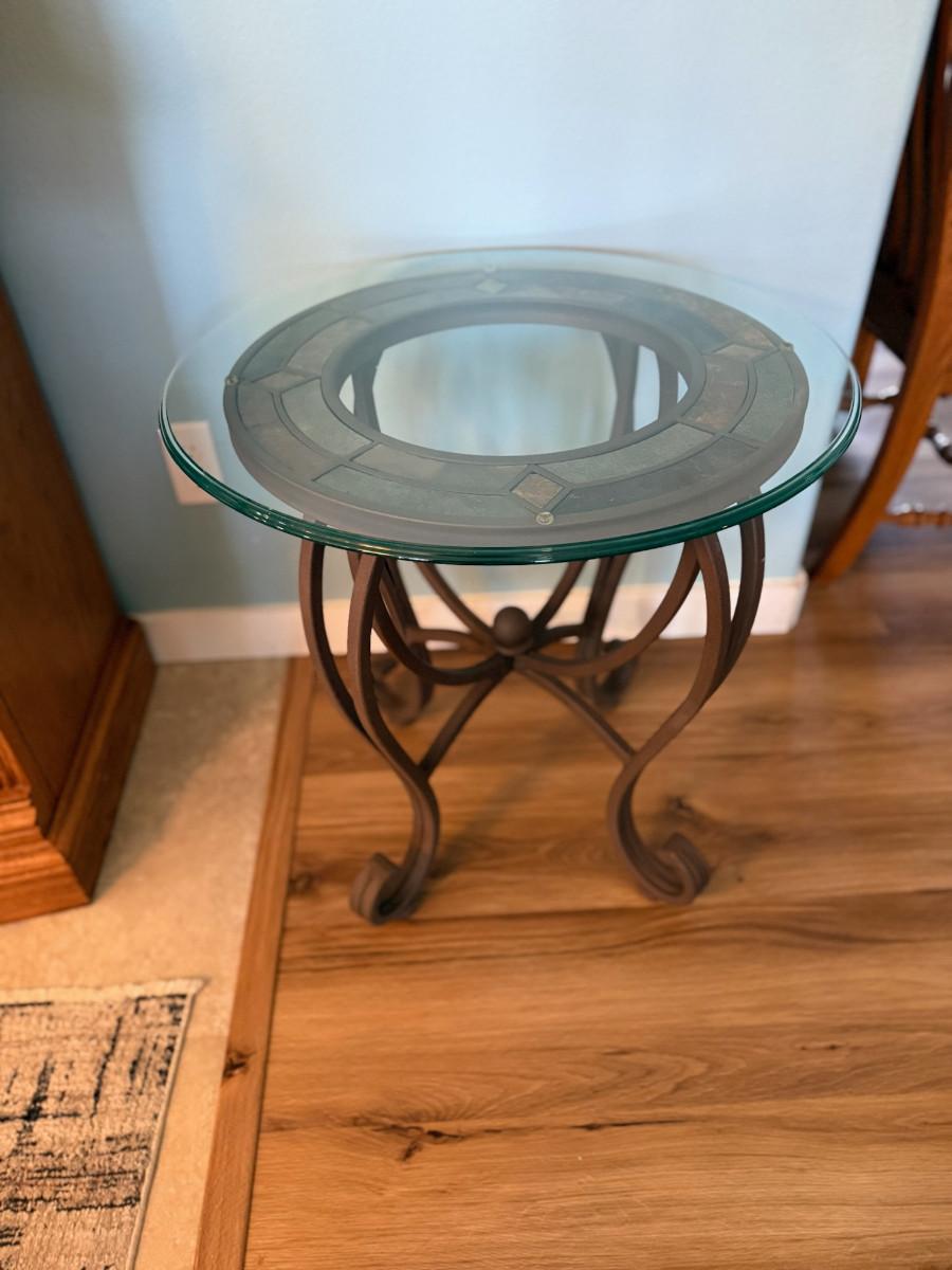 Whether you're looking to enhance your home decor or need a functional surface for everyday use, the Glass Rod Iron End Table is a perfect choice. Its timeless design and durable construction ensure it will be a beloved piece in your home for years to come. Add a touch of elegance to your space with this beautiful end table!