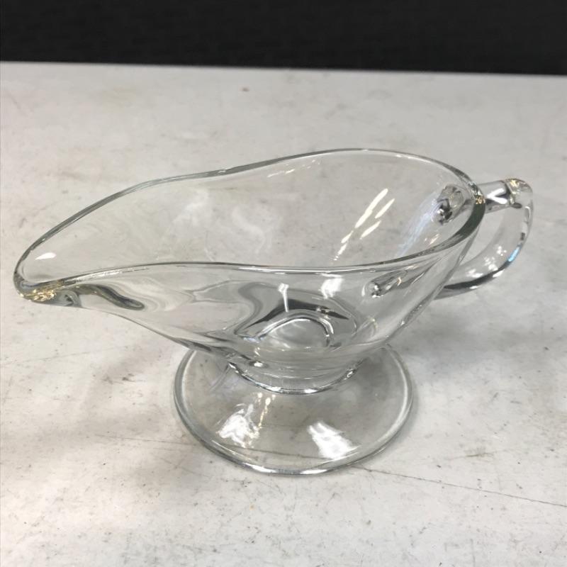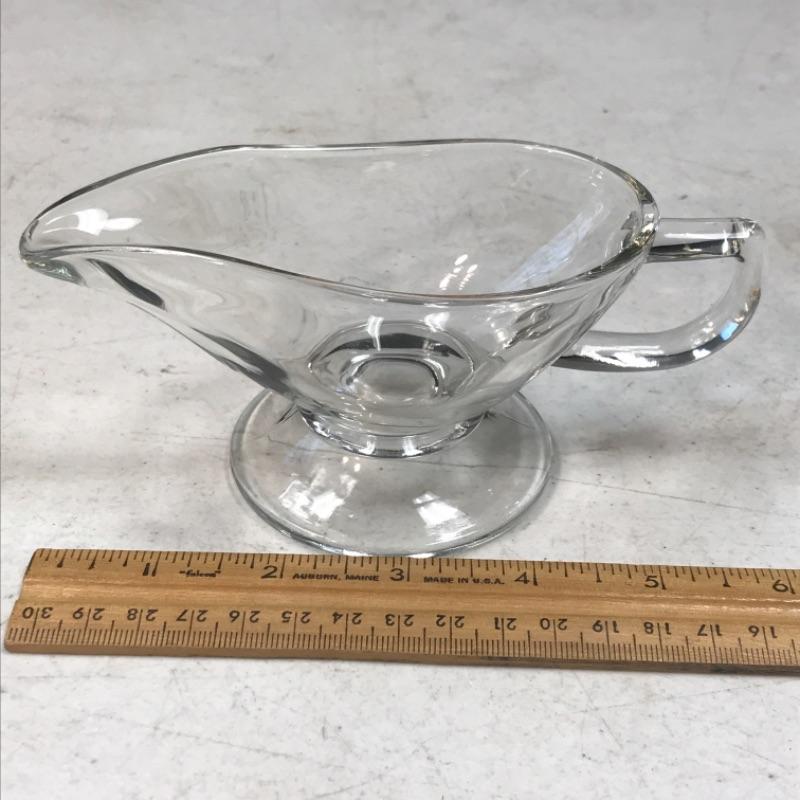 Up for auction is a glass sauceboat. It is unmarked, and in excellent condition with no visible wear. See pictures.
