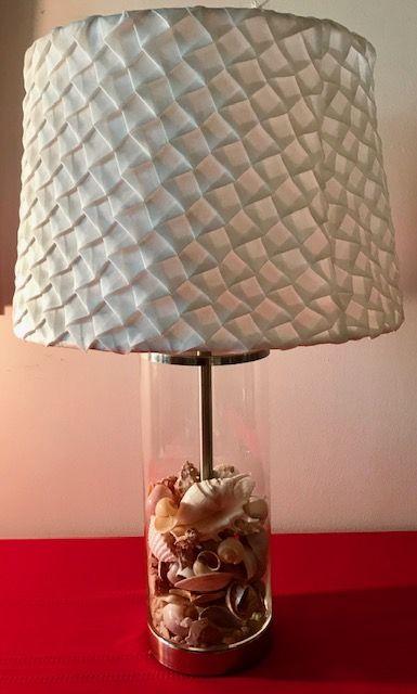 Measures 24 inches high with shade, base is 5 inches in diameter.