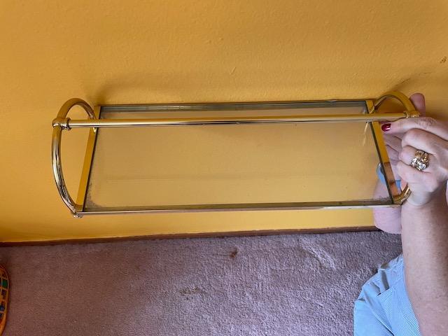 Glass wall shelf - gold colored metal frame 17wide x 6.75 deep
