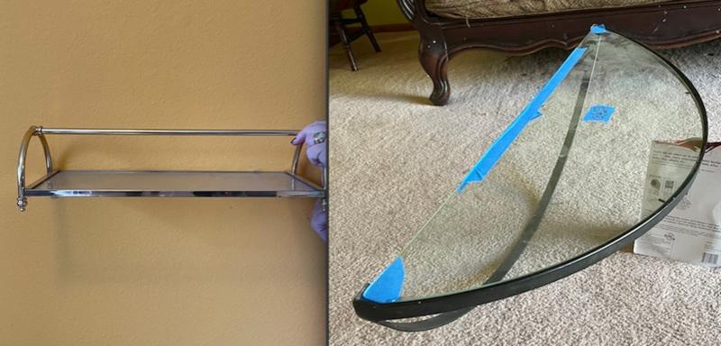 Glass Wall Shelf Black metal frame - Tape is protecting the glass 32.5 wide 10.5 deep