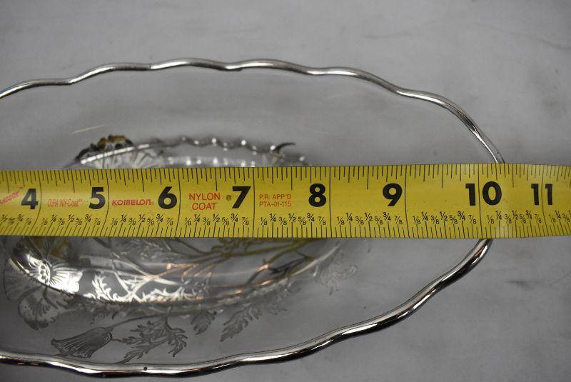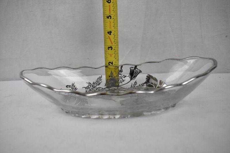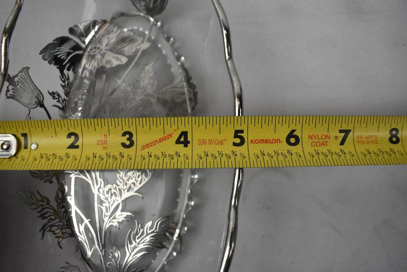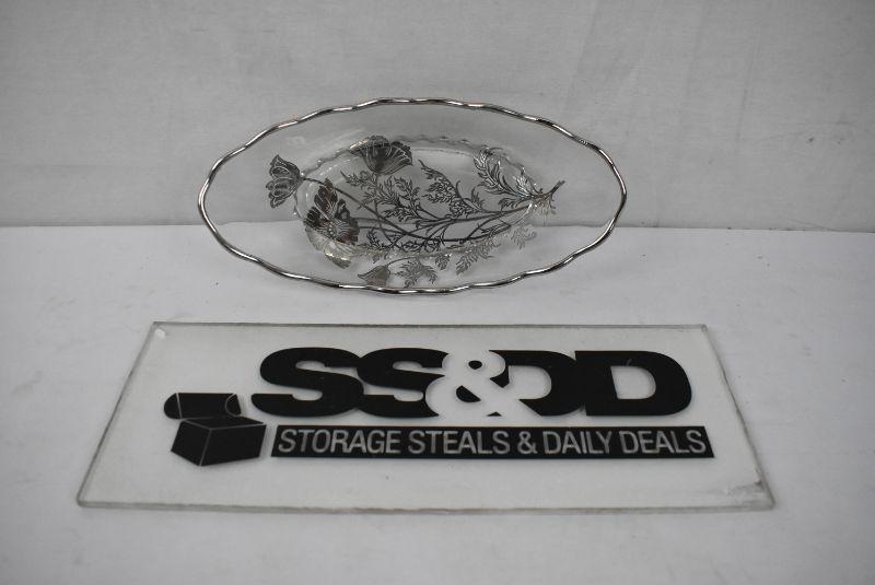 Glass & Silver Etched Small Tray/Candy Dish 10.5" x 5" x 2"