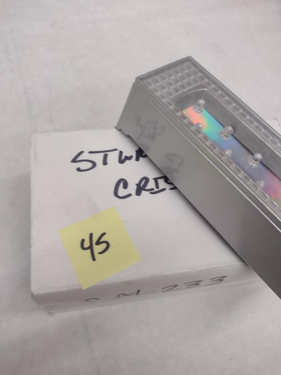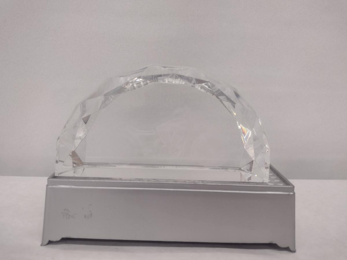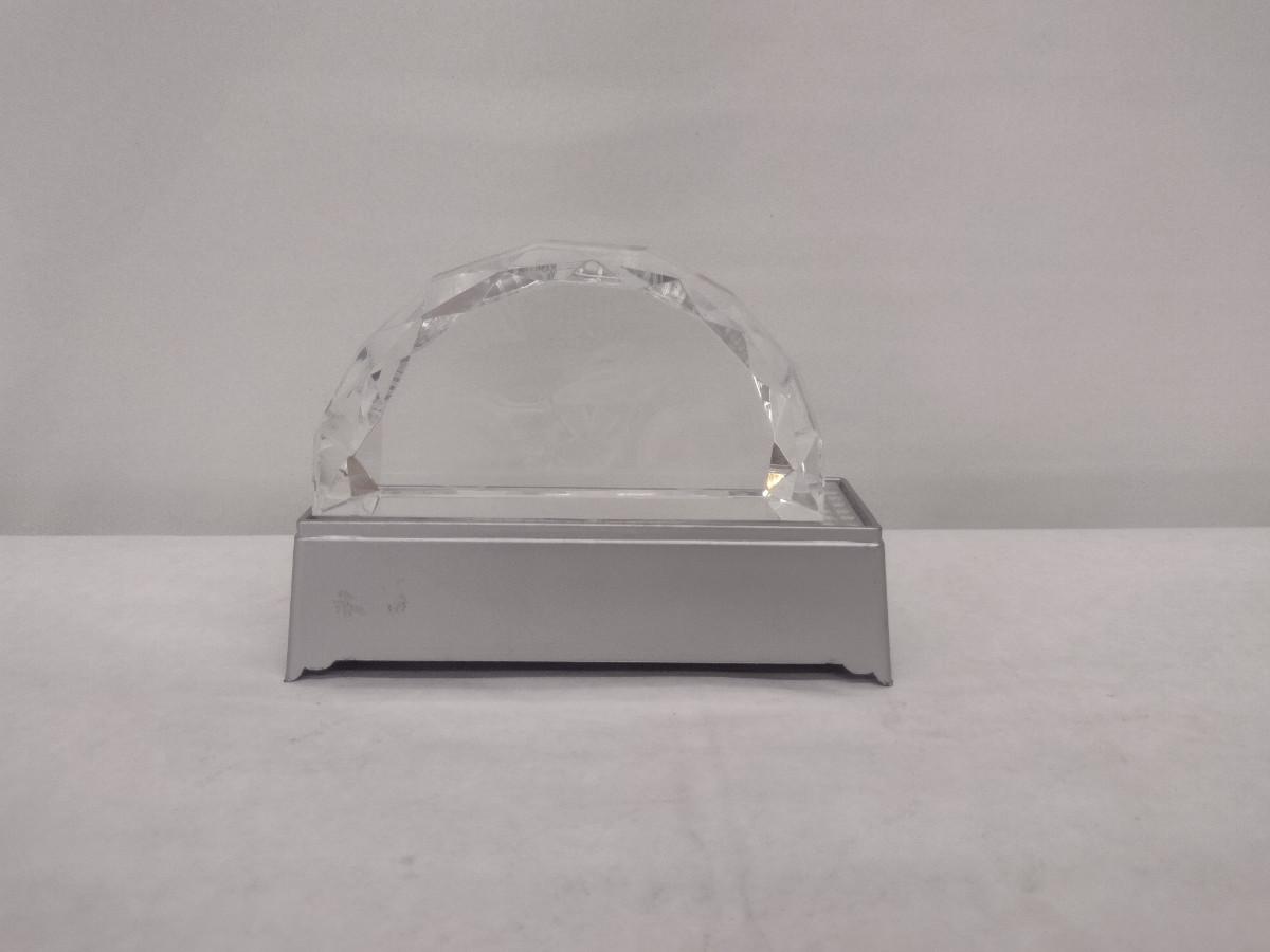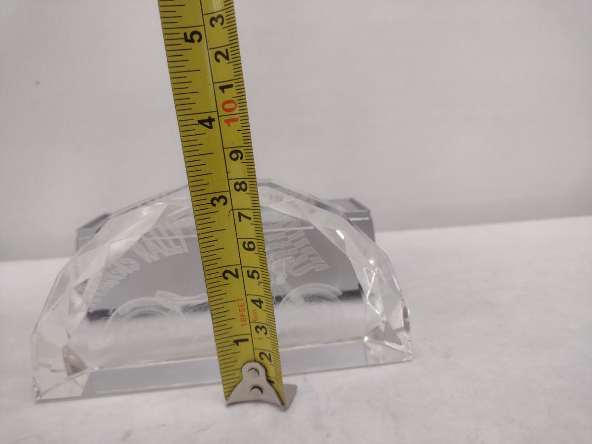 Glass Sturgis Rally Motorcycle and American Flag Design Paperweight with Lighted Display Platform (#45). Platform is not functioning- needs batteries. Paperweight measures approx 5 3/4" long, 3" tall. Item comes with original box.