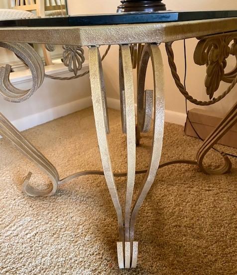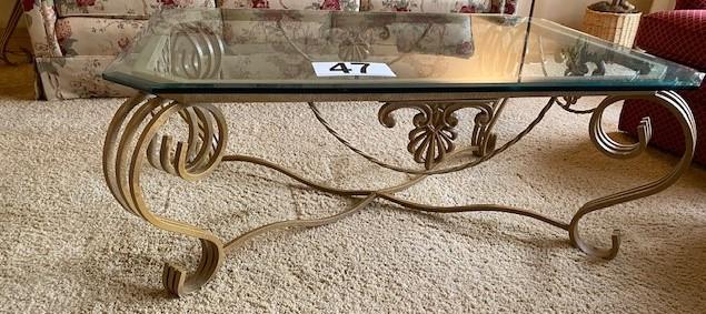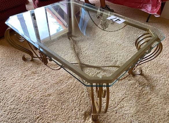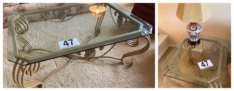LOT#47: Glass Top Coffee & End Tables with Satsuma Style Lamp
