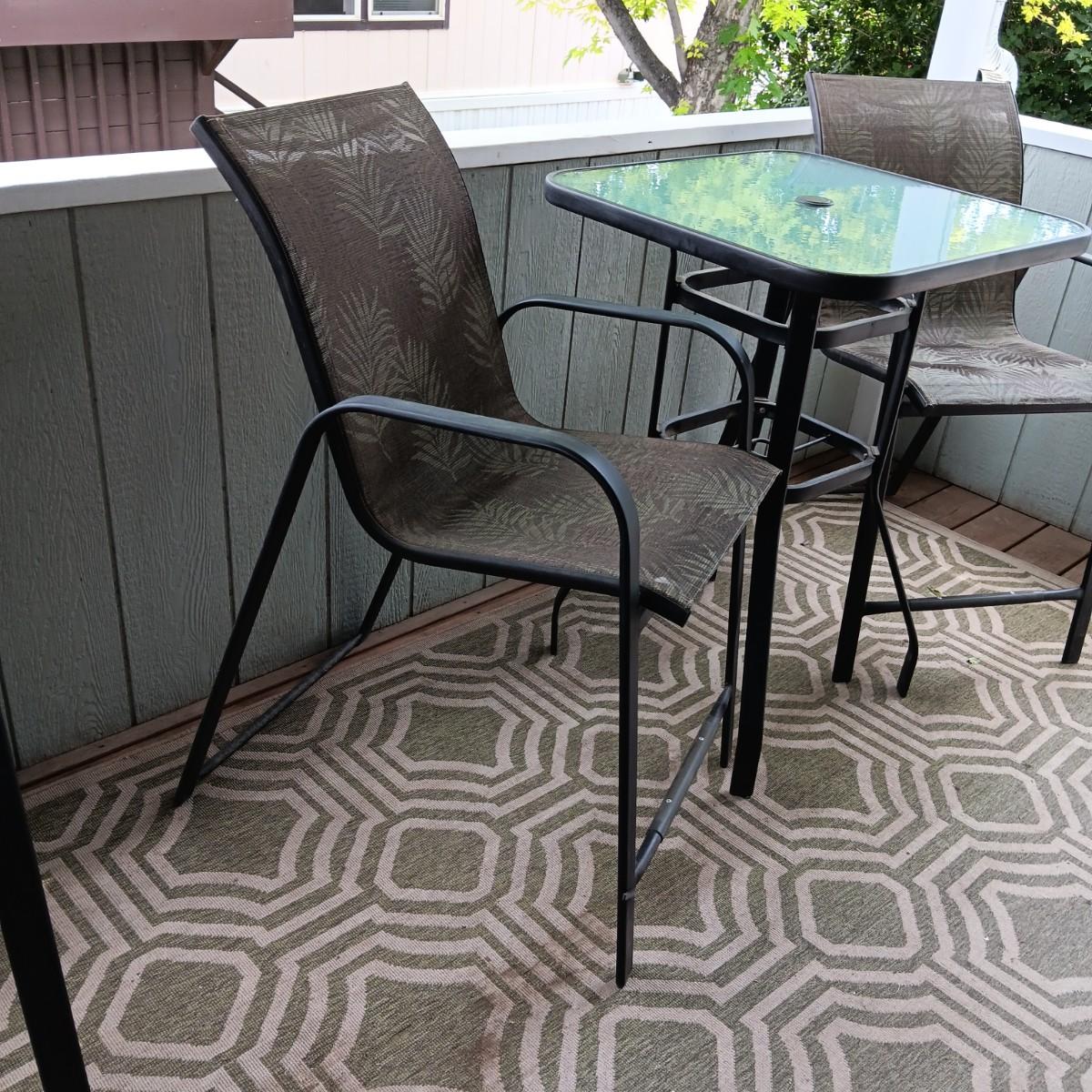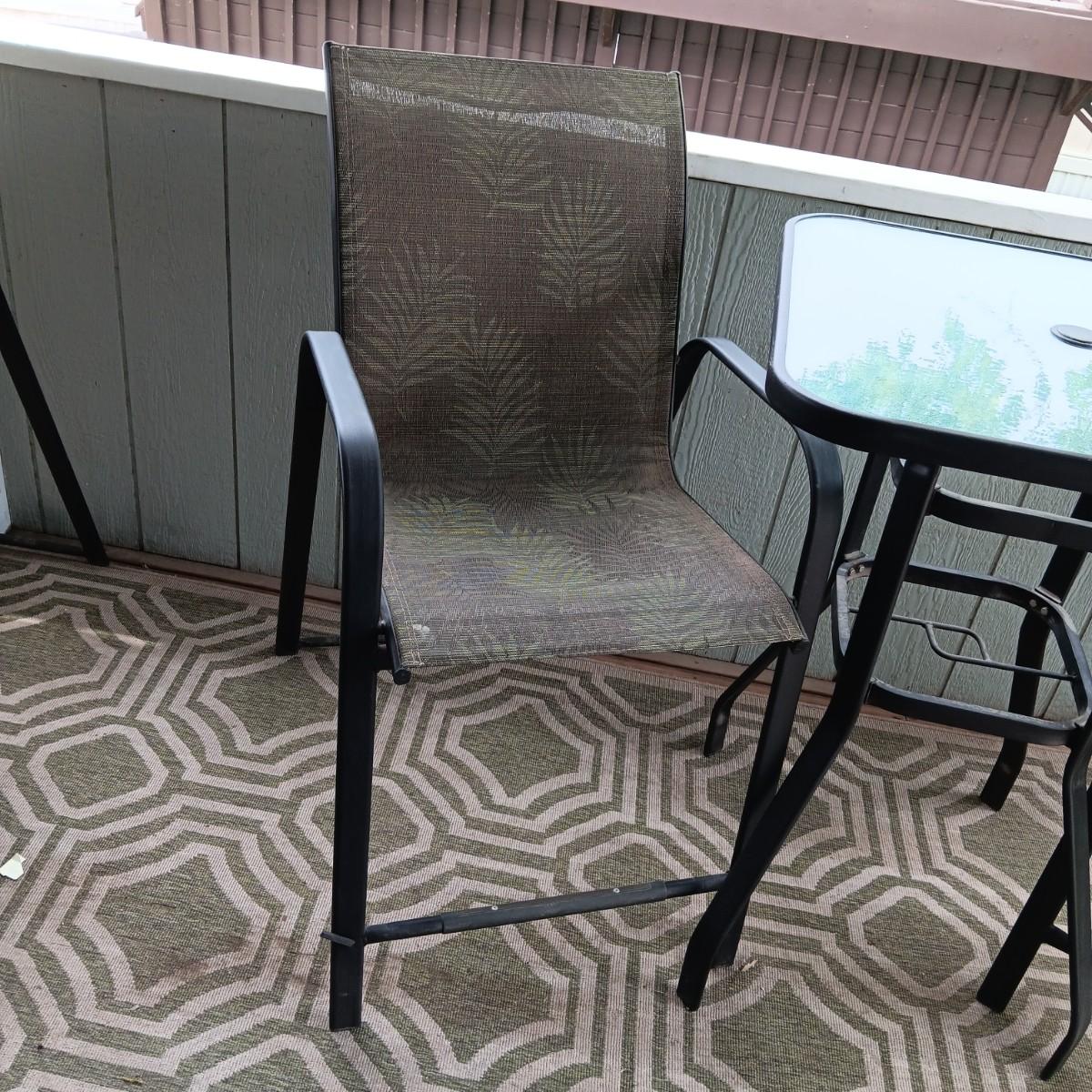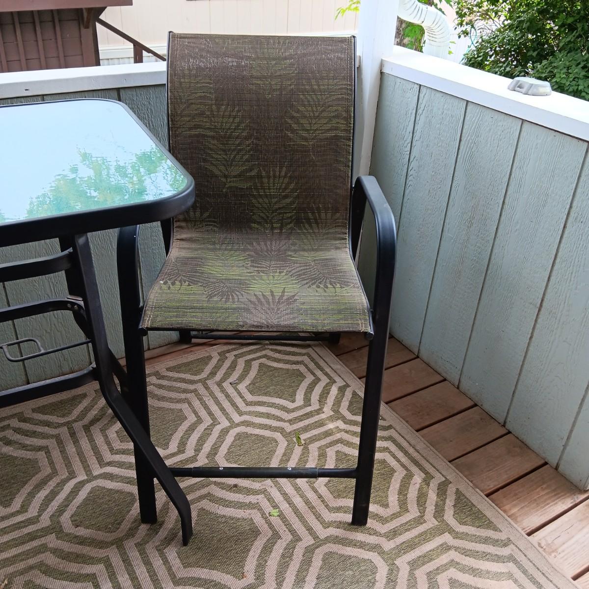 GLASS TOP COUNTER HEIGHT PATIO TABLE W/2 CHAIRS
