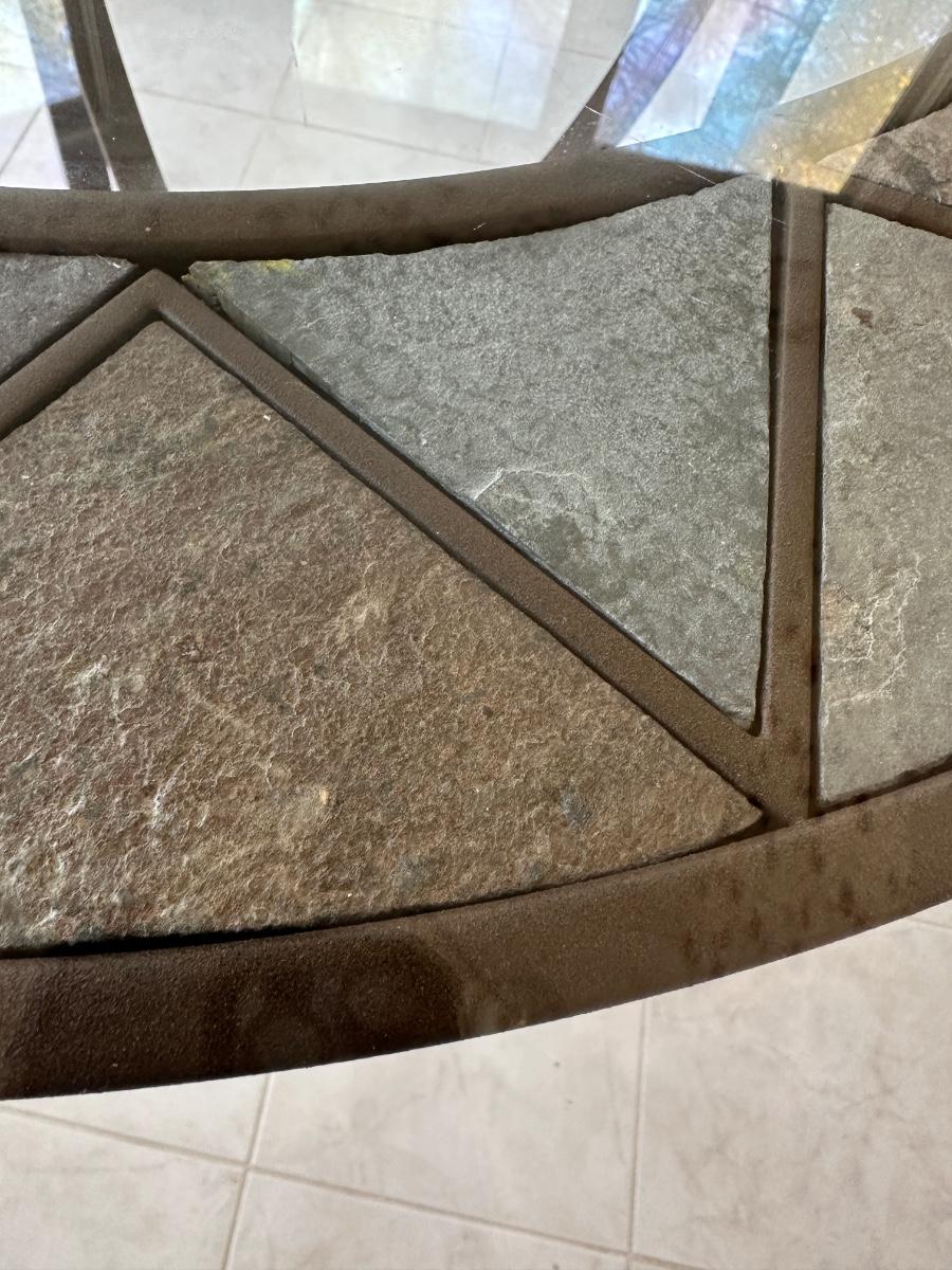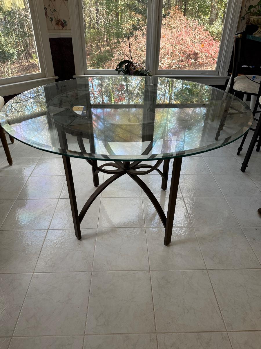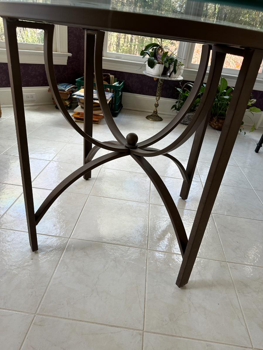 Glass Top Dining Table 48", 29 1/2 tall metal and tile accent base