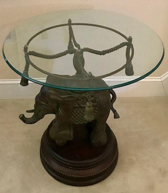 Glass Top Elephant Table With Wooden Base