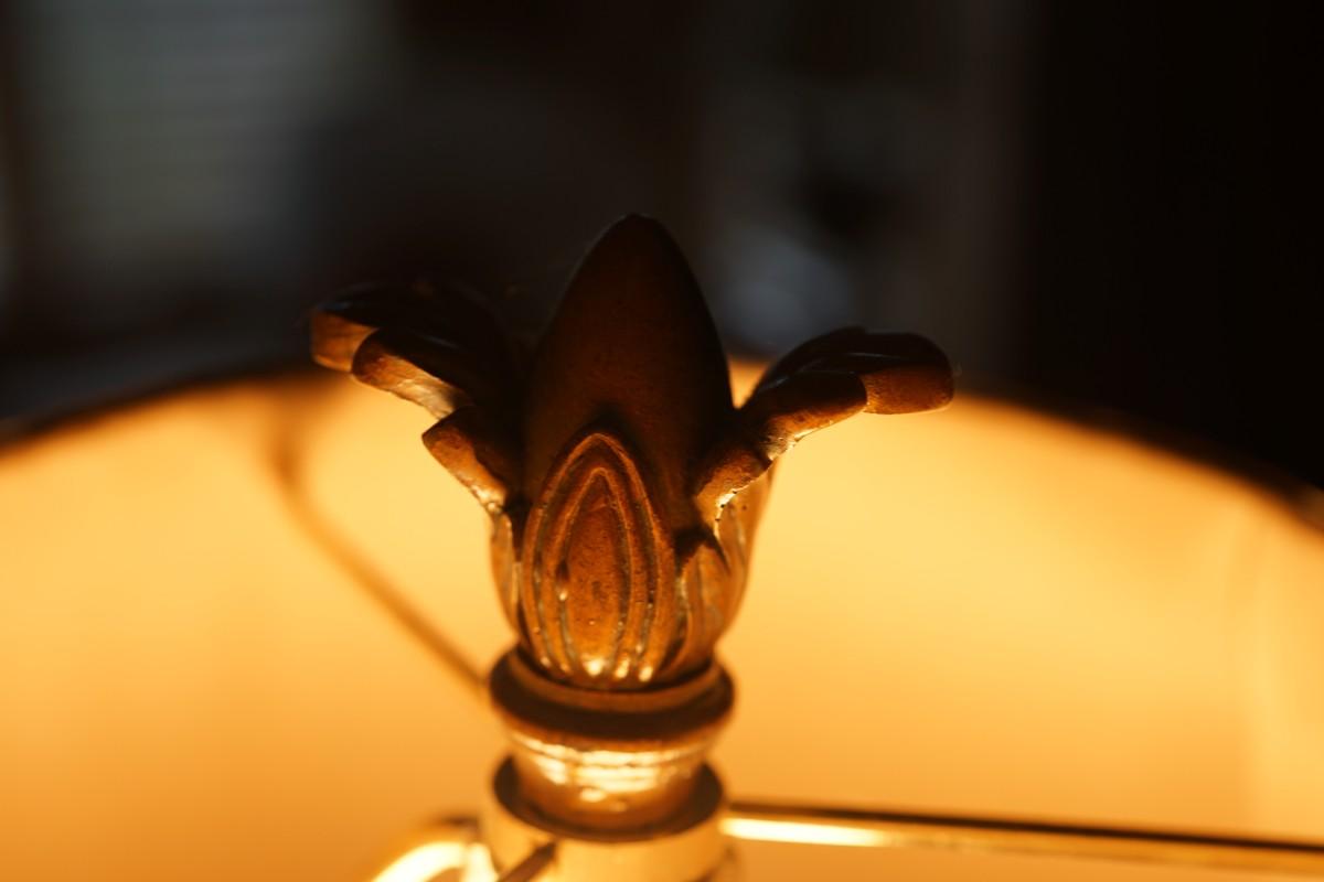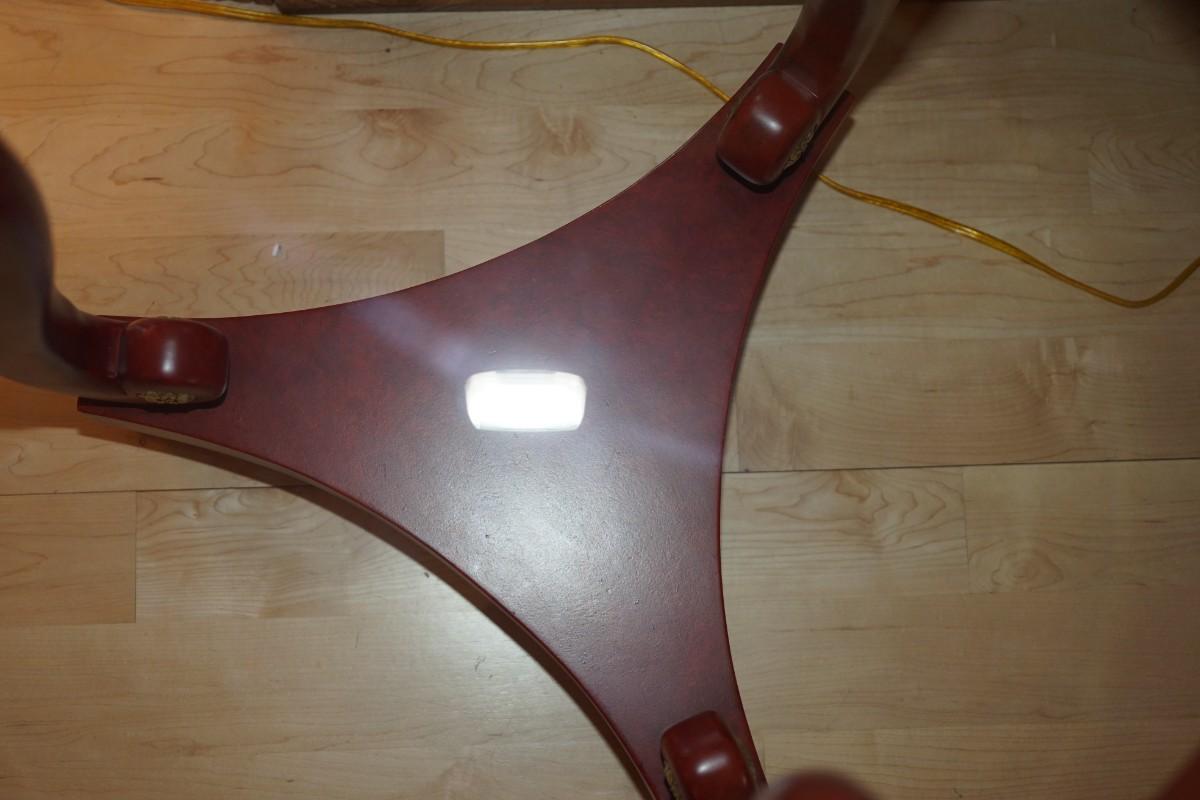 Florette's accent the base of the support which is also attached to a lower shelf. Ball footings.