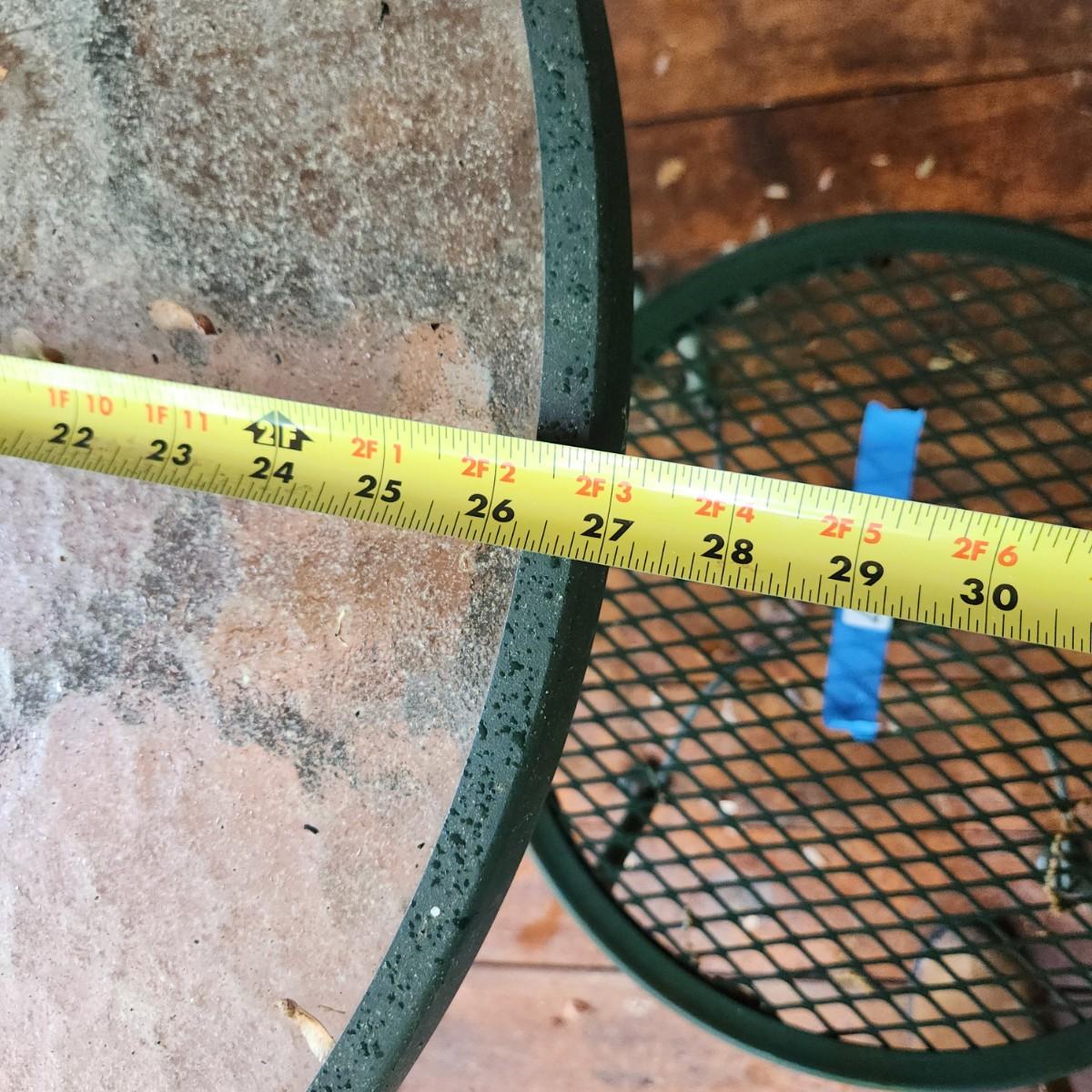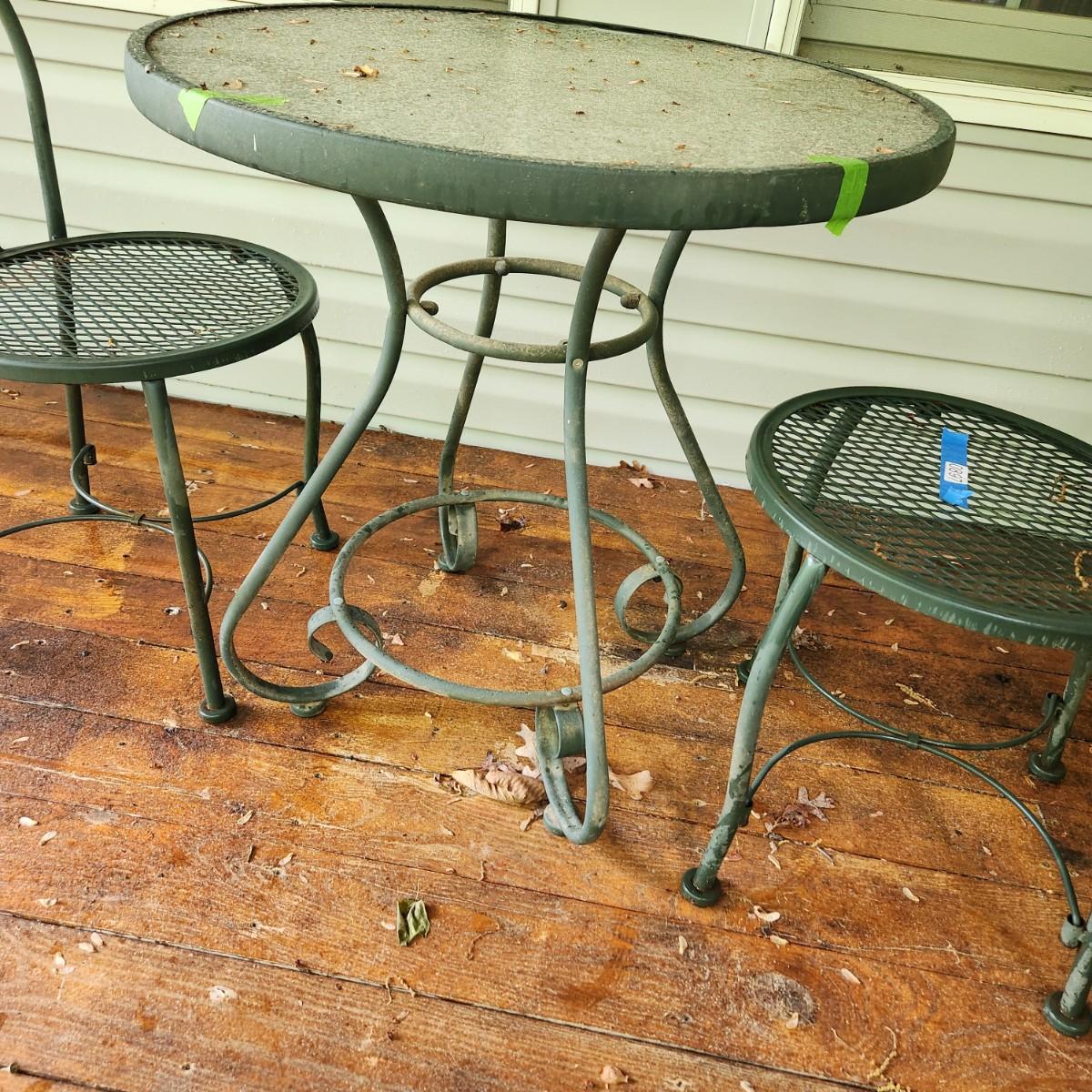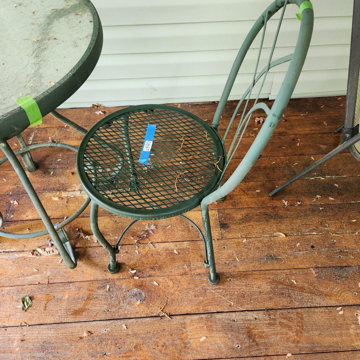 Glass Top Patio Table & 2 Wire Mesh Chairs 27" dia table