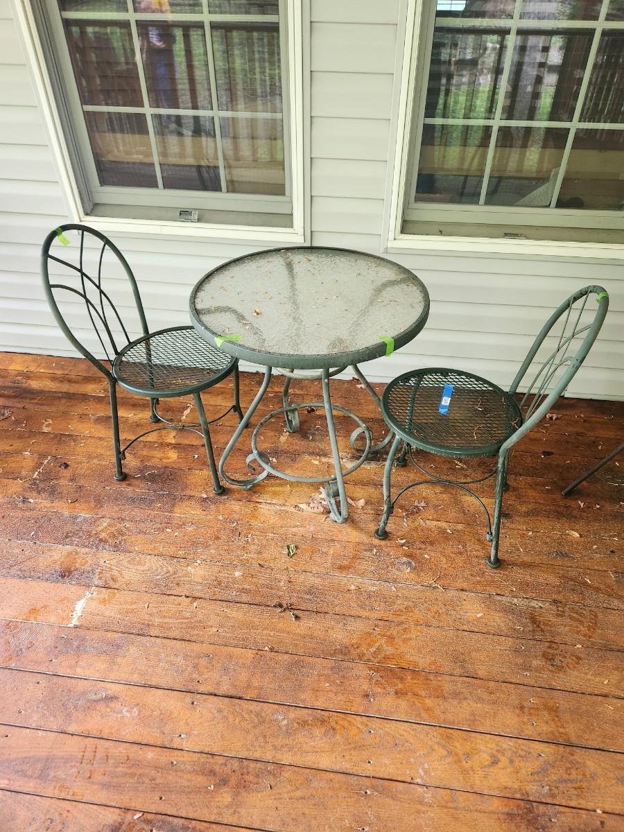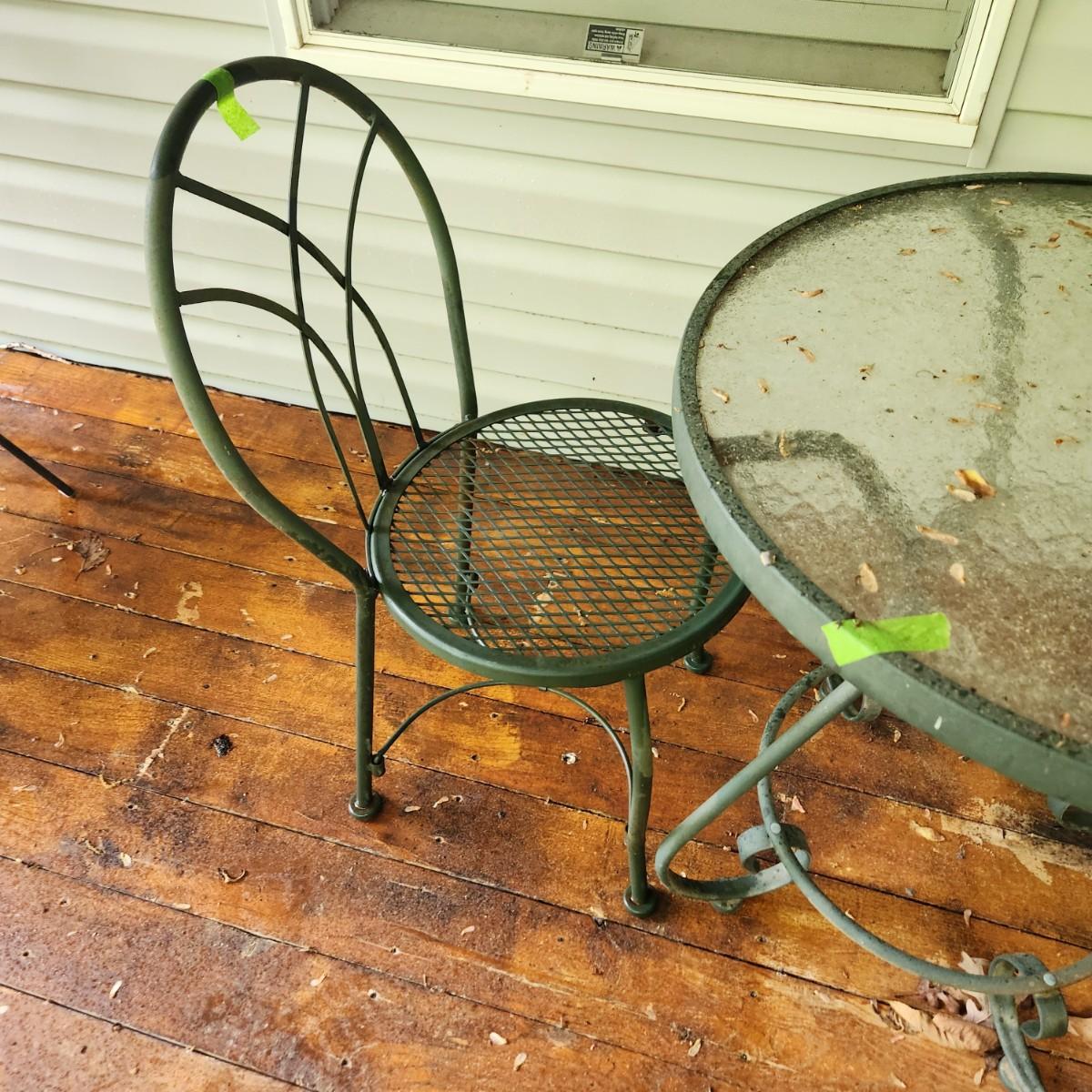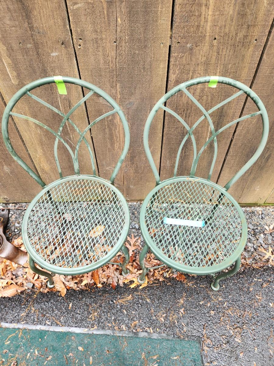 Glass Top Patio Table & 2 Wire Mesh Chairs 27" dia table