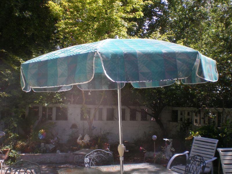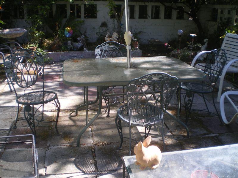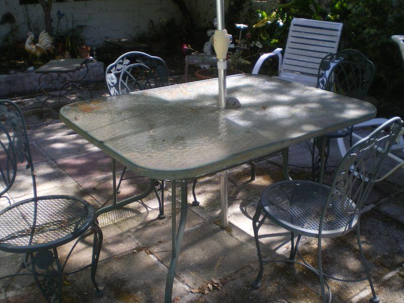 Glass Top Patio Table with 4 Chairs & Umbrella