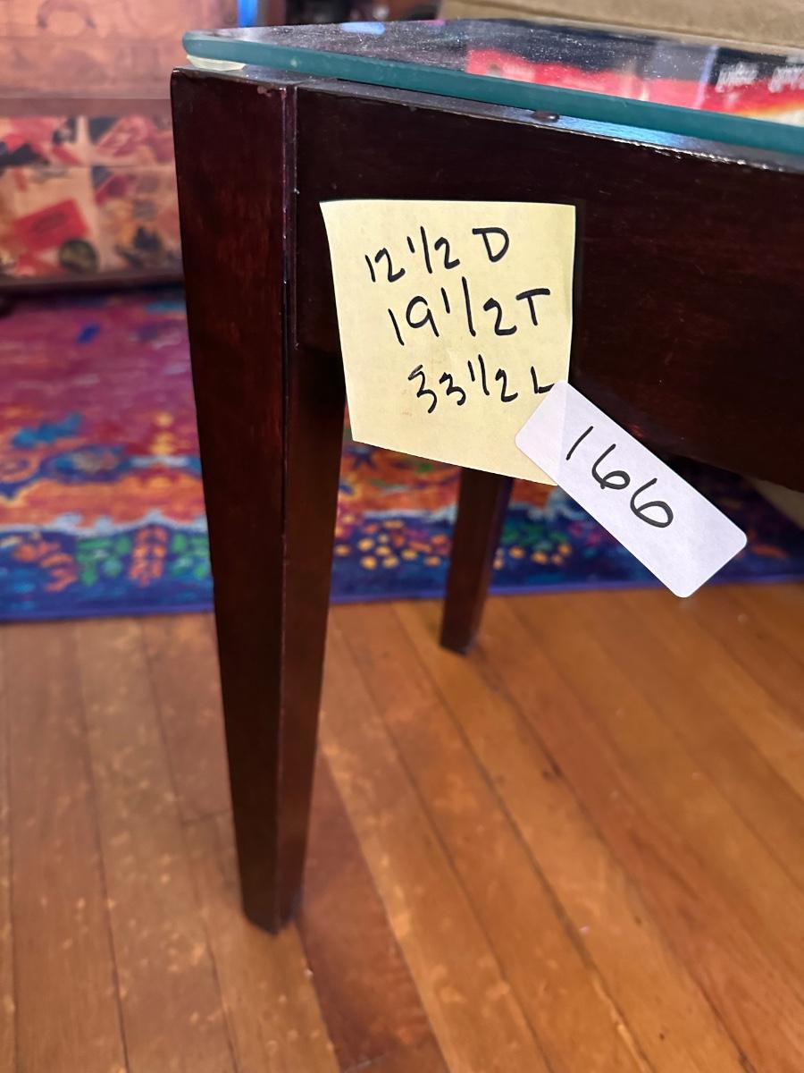 GLASS TOP ROCK ART BENCH TABLE 12 1/2X19 1/2X33 1/2