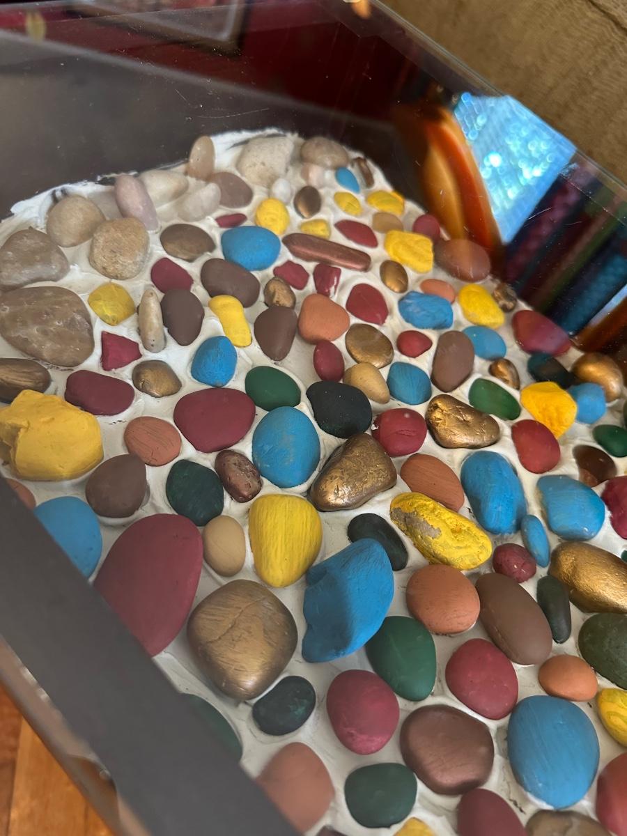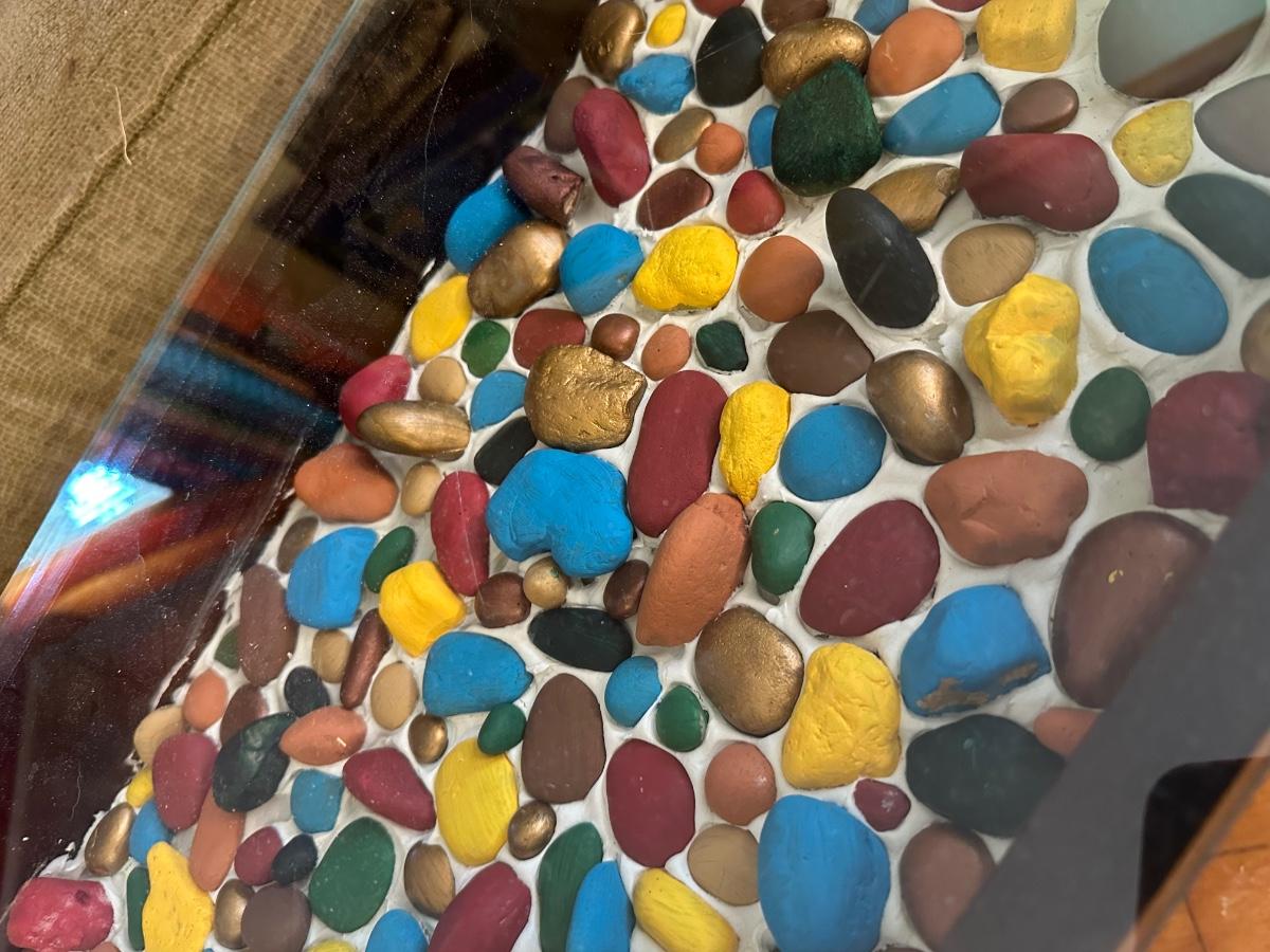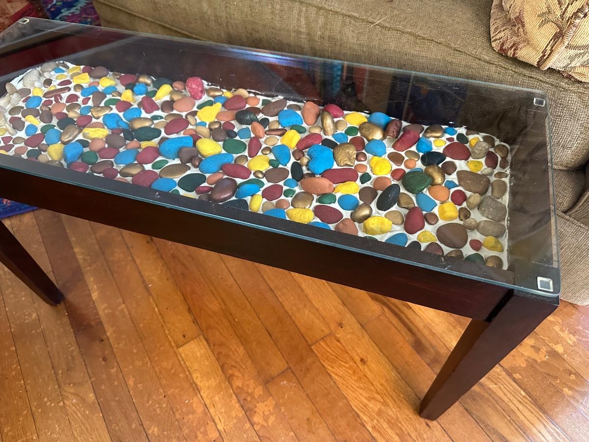 GLASS TOP ROCK ART BENCH TABLE